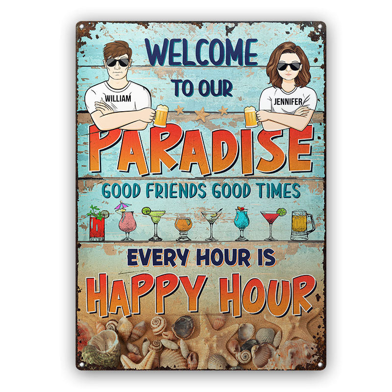 Couple Welcome To Our Paradise Husband Wife - Backyard Sign - Personalized Custom Classic Metal Signs