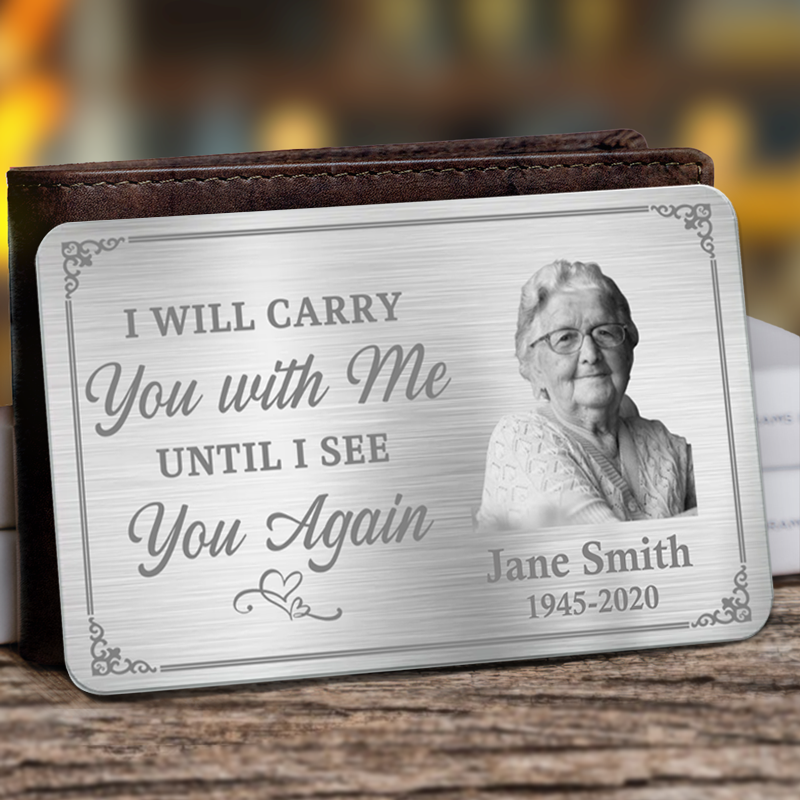 Custom Photo I'll Carry You With Me Until I See You Again - Memorial Personalized Custom Aluminum Wallet Card