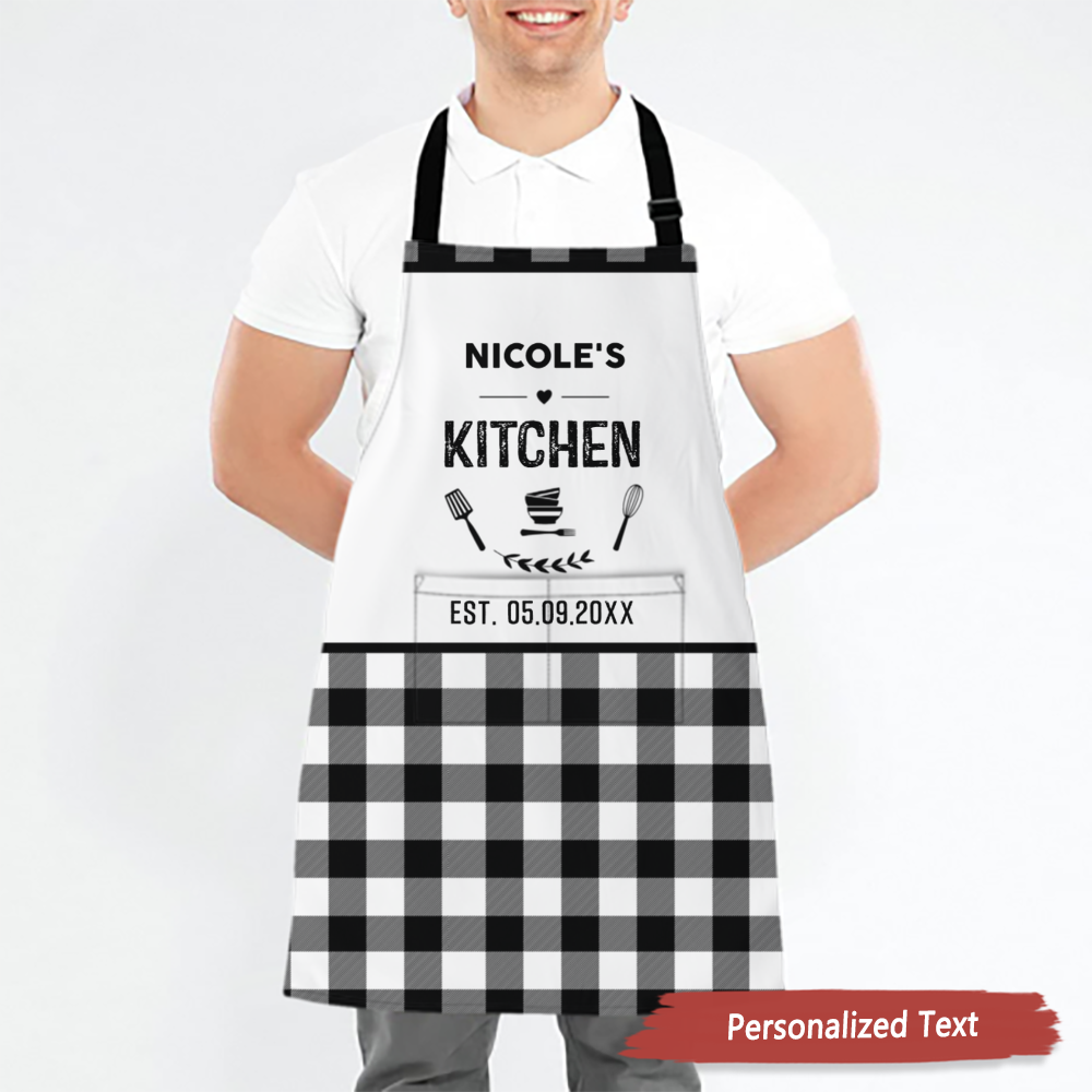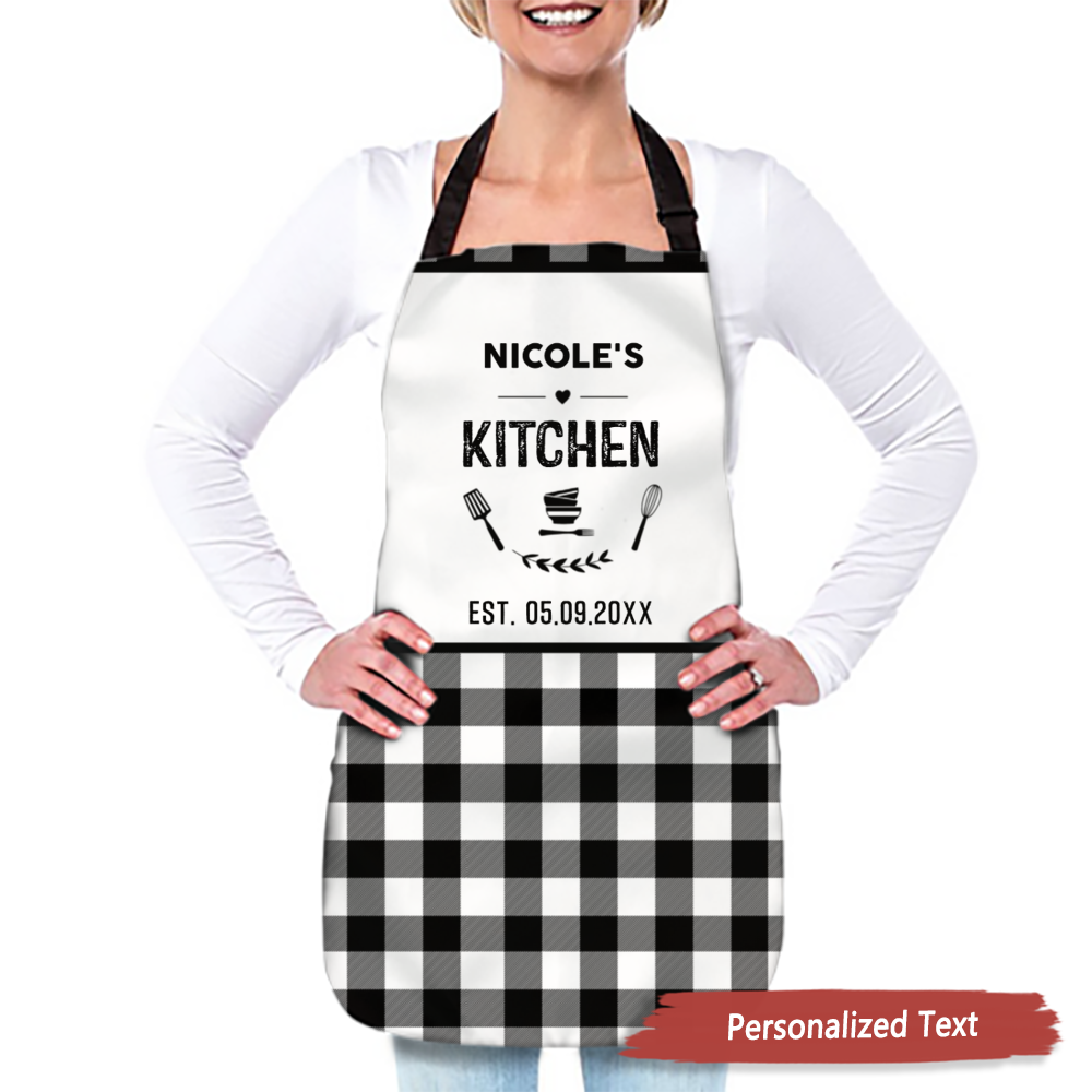 Custom Text, Black and White Buffalo Plaid Kitchen Apron