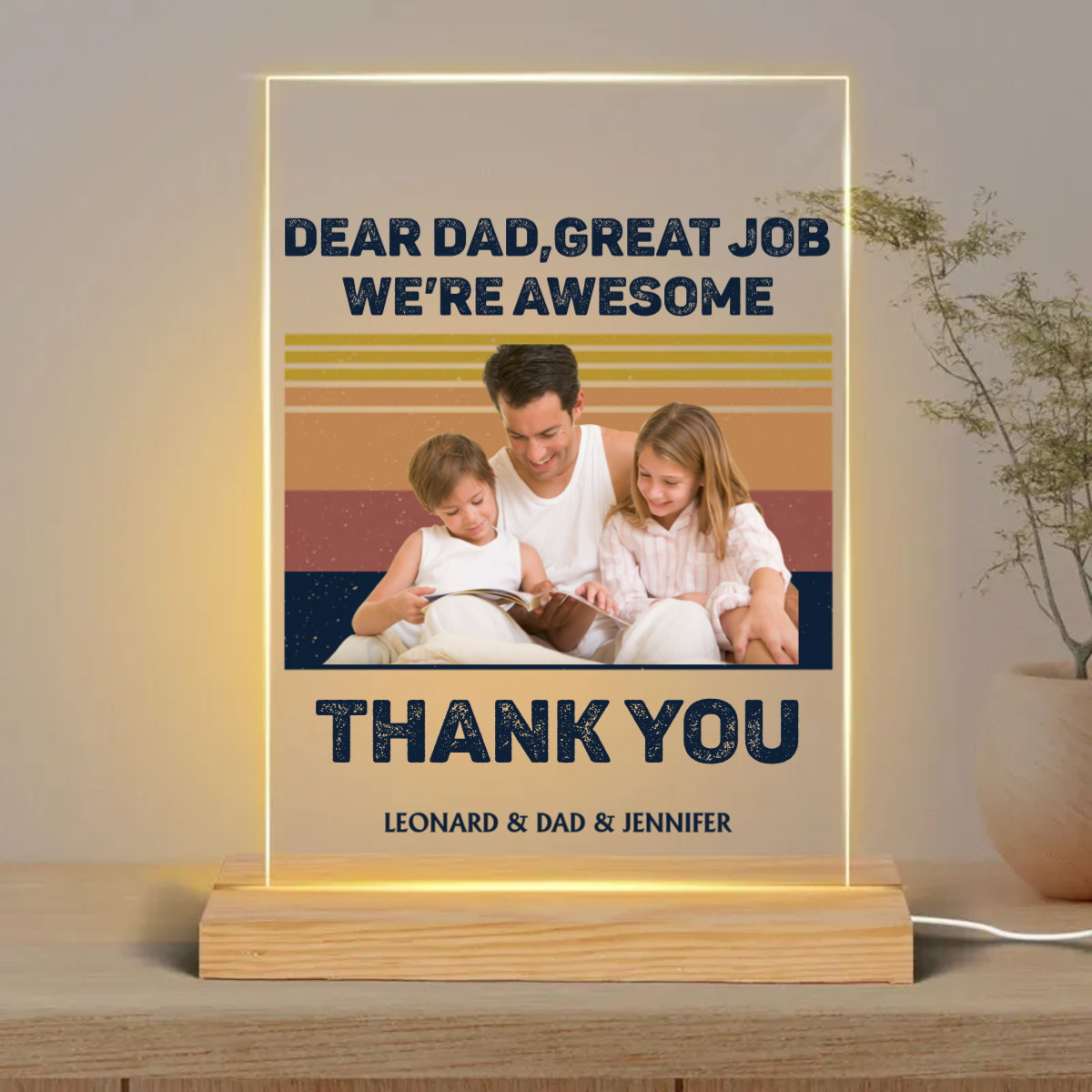 Custom Text - Father Mother Gift - Personalized Upload Photo Rectangle Acrylic Plaque LED Lamp Night Light