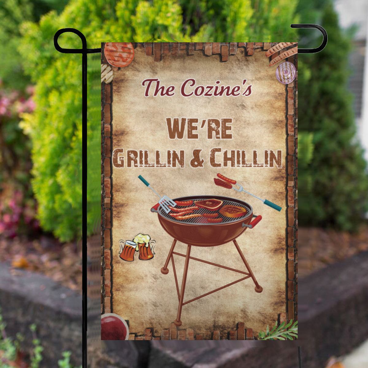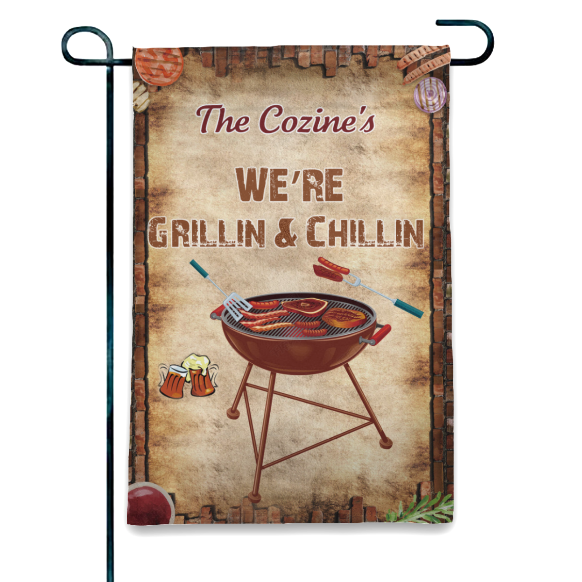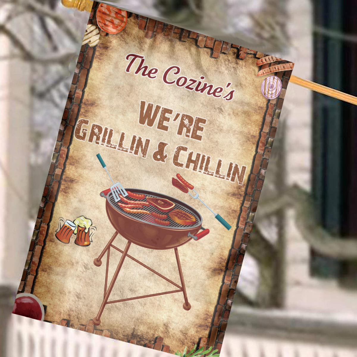 Customized BBQ pit Flag, Grillin and Chillin Flag, backyard flag, party flag No.EDI4YR