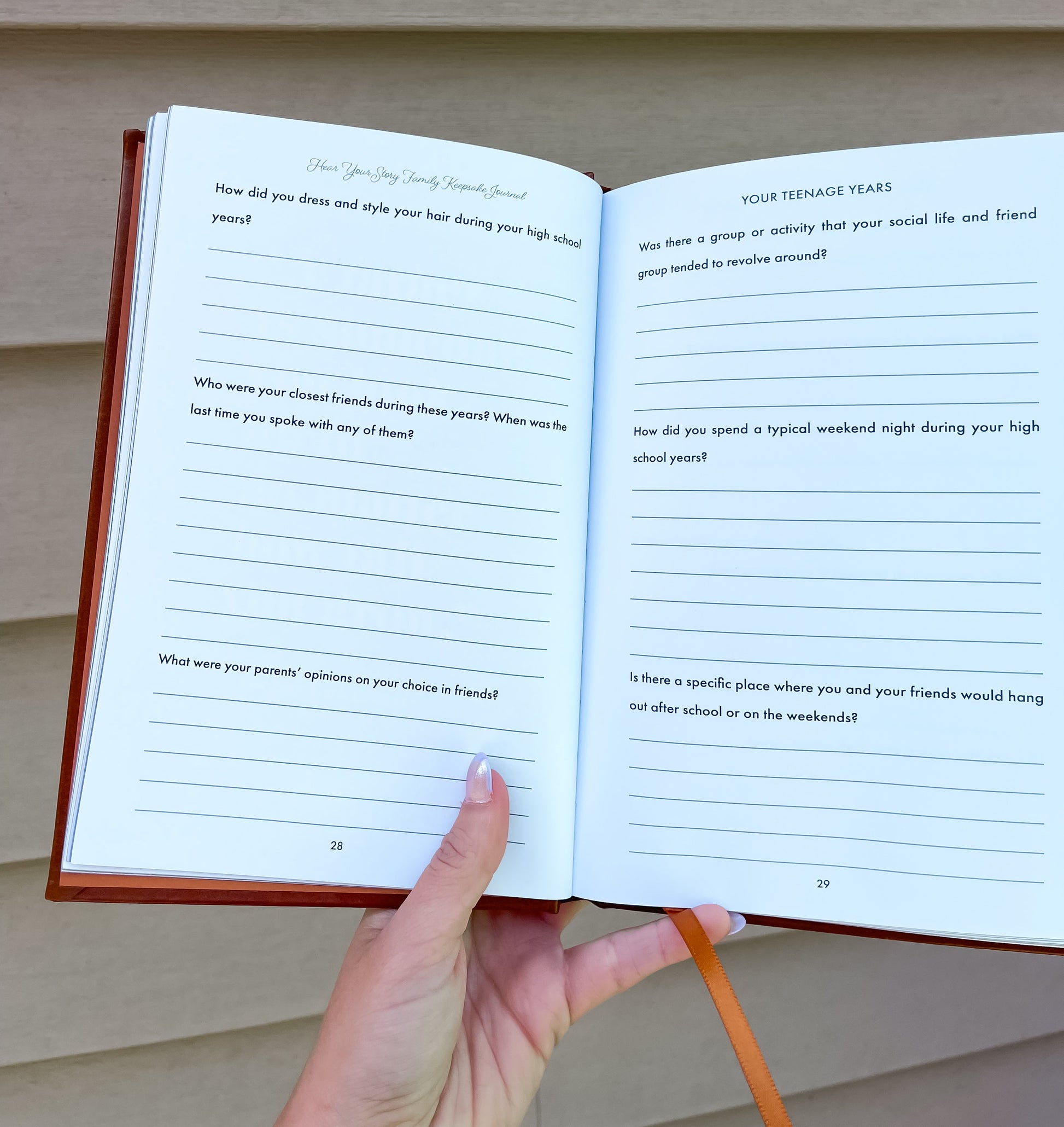 Hear Your Story family memory journals are lovingly crafted with thoughtfulness and skill. With each carefully chosen question, we gently guide you or your loved one down memory lane, making it simple and fun to reminisce, chronicle, and pass on life’s tales.