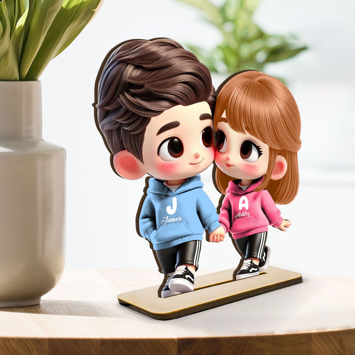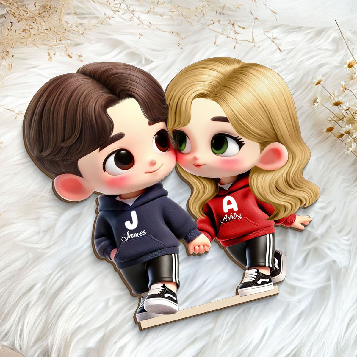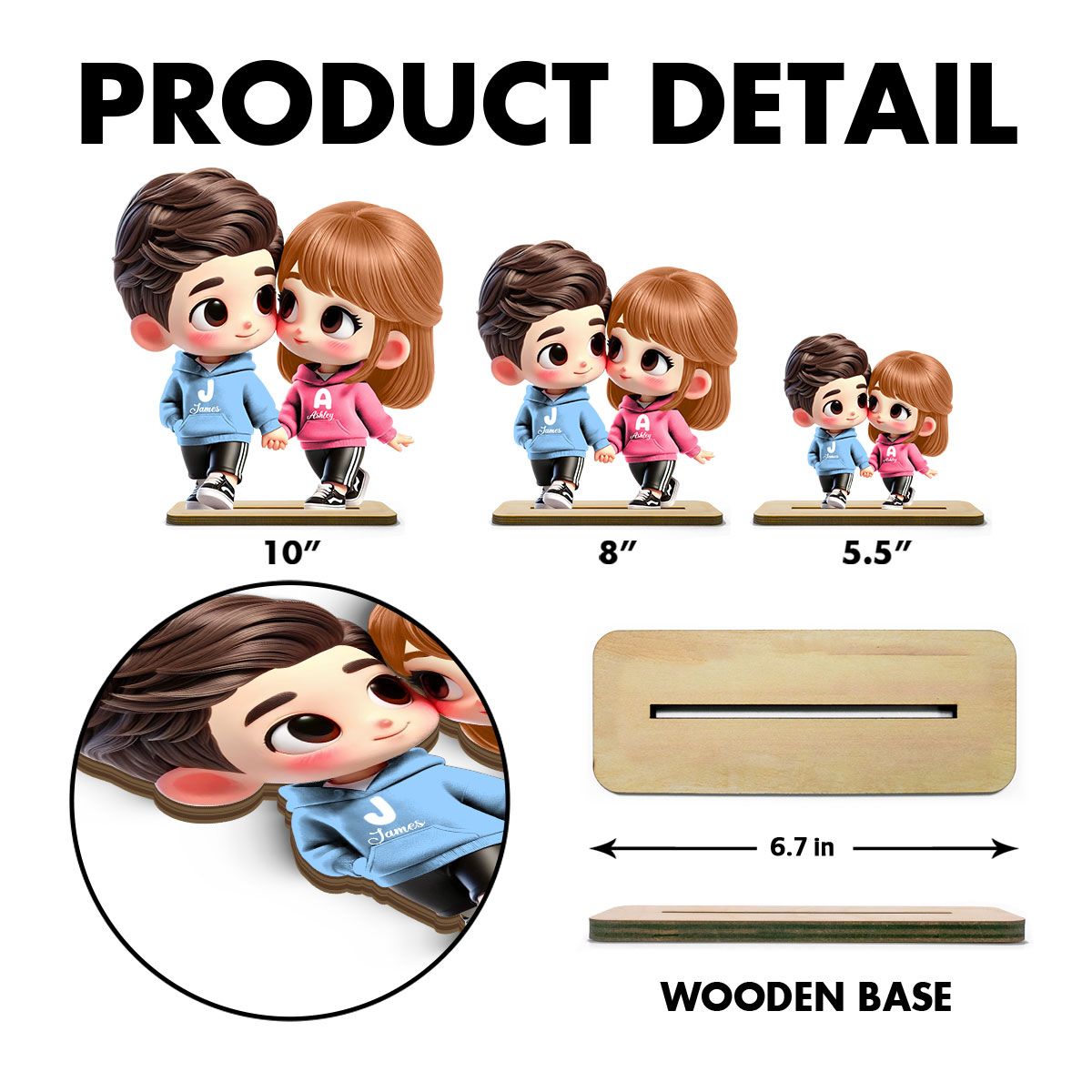 Cute Cartoon Couple Holding Hands Personalized Standing Wooden Plaque, Anniversary & Valentine's Day Gift for him, Gift for her