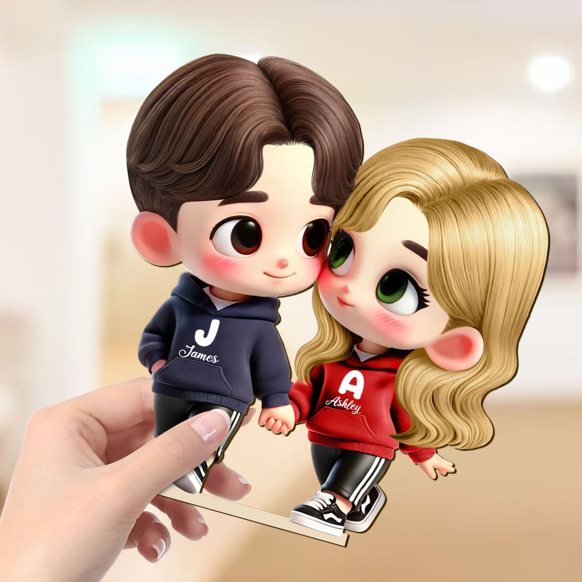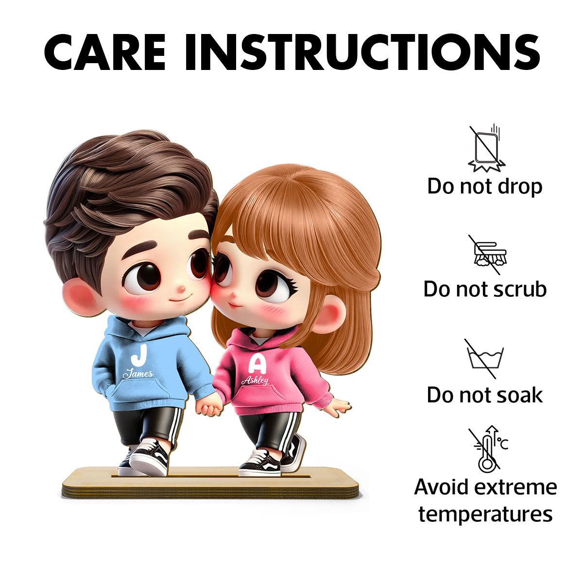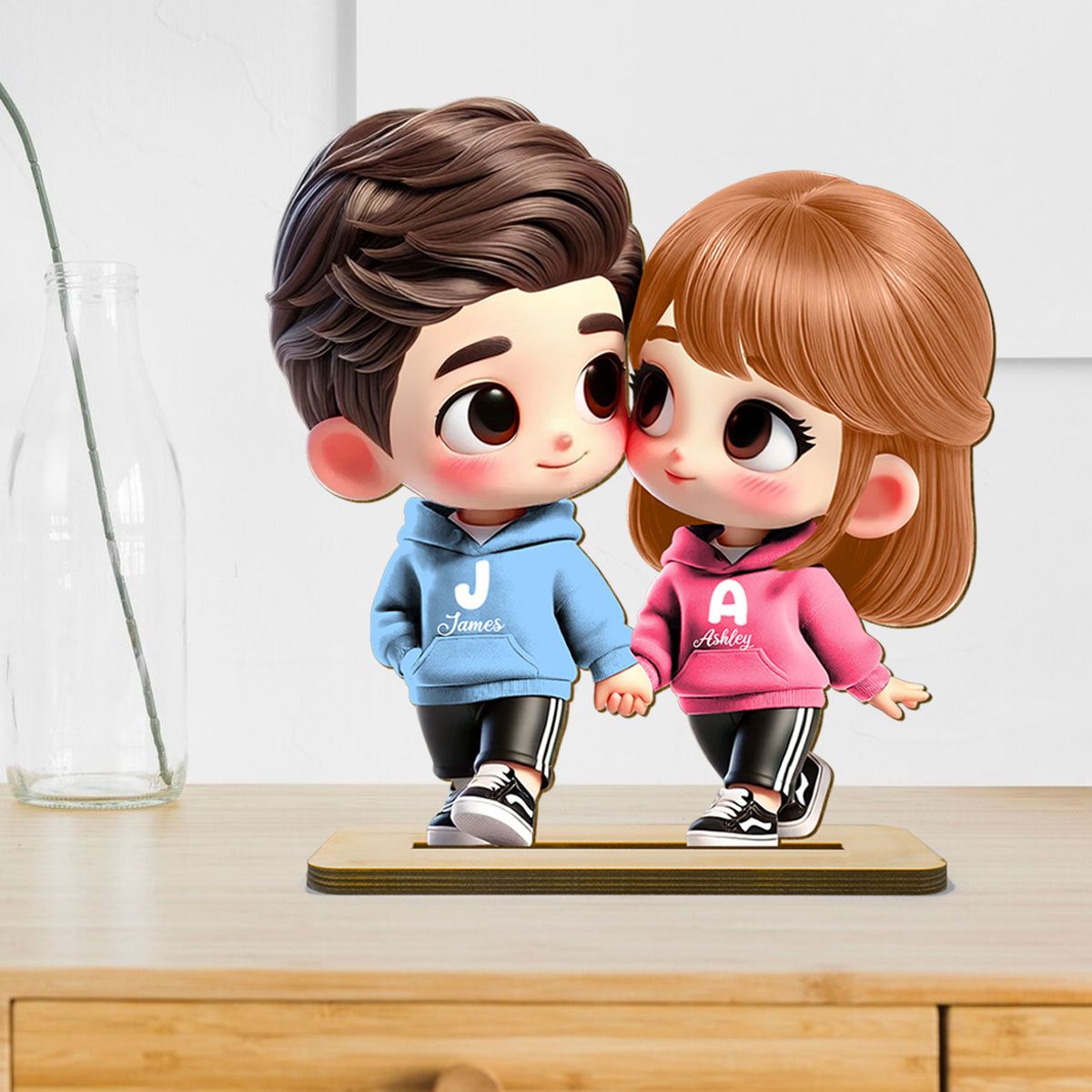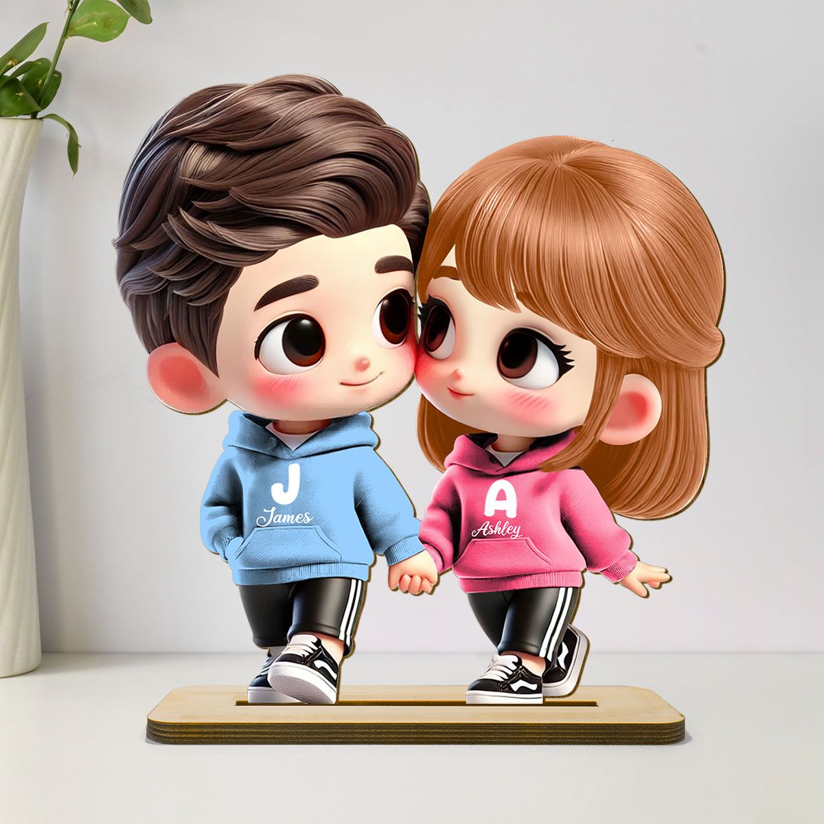 Cute Cartoon Couple Holding Hands Personalized Standing Wooden Plaque, Anniversary & Valentine's Day Gift for him, Gift for her