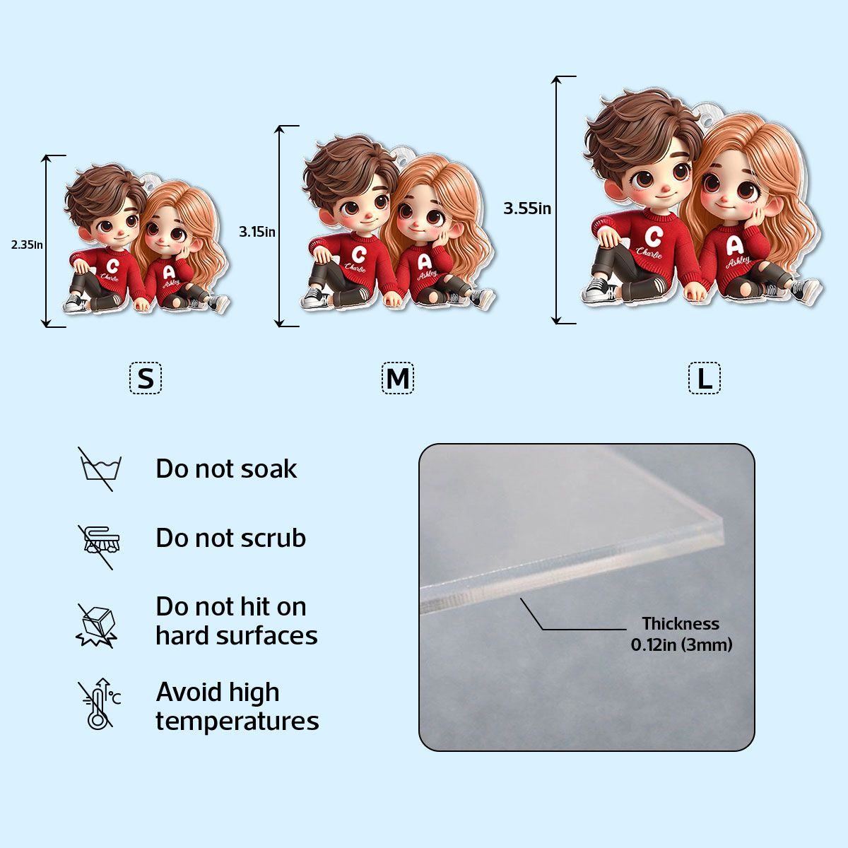 Cute Couple Sitting Together Personalized Acrylic Keychain, Gift for him, Gift for her