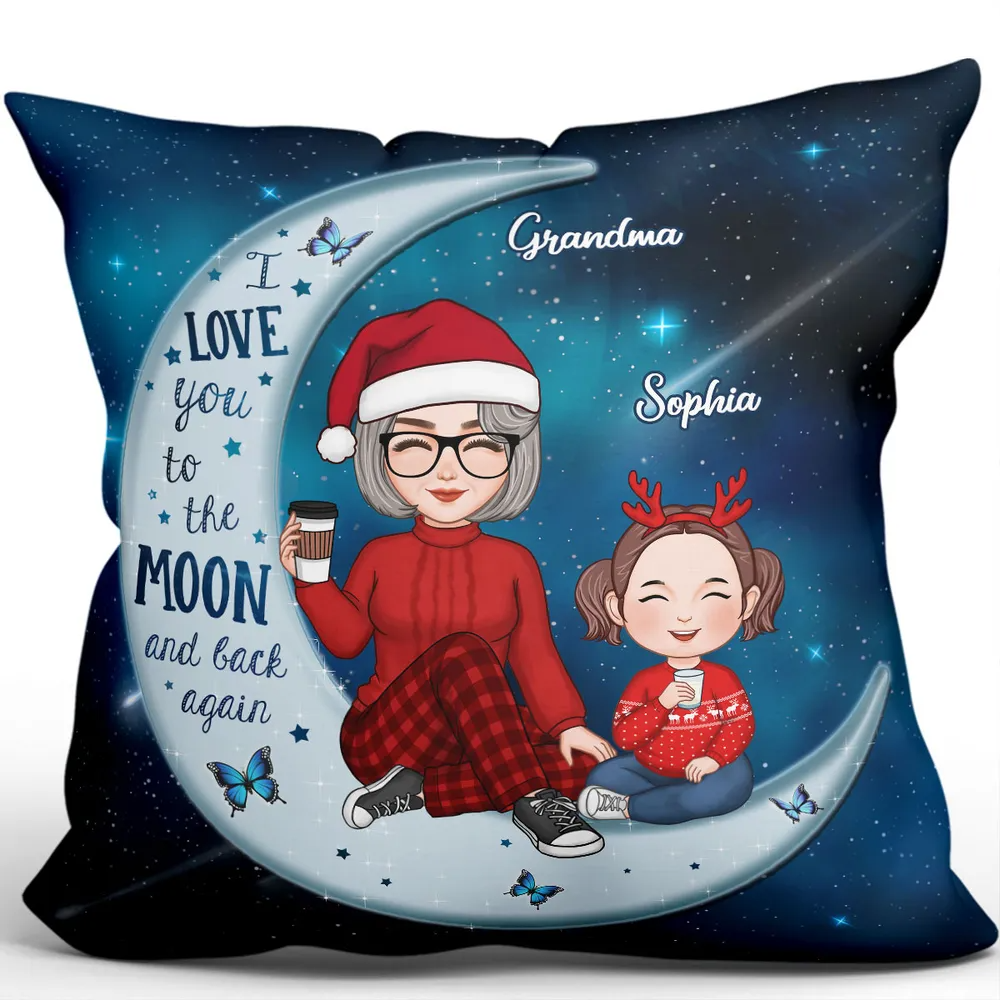 Cute Grandma & Grandkid On Moon Christmas Gift For Grandson Granddaughter Personalized Polyester Linen Pillow