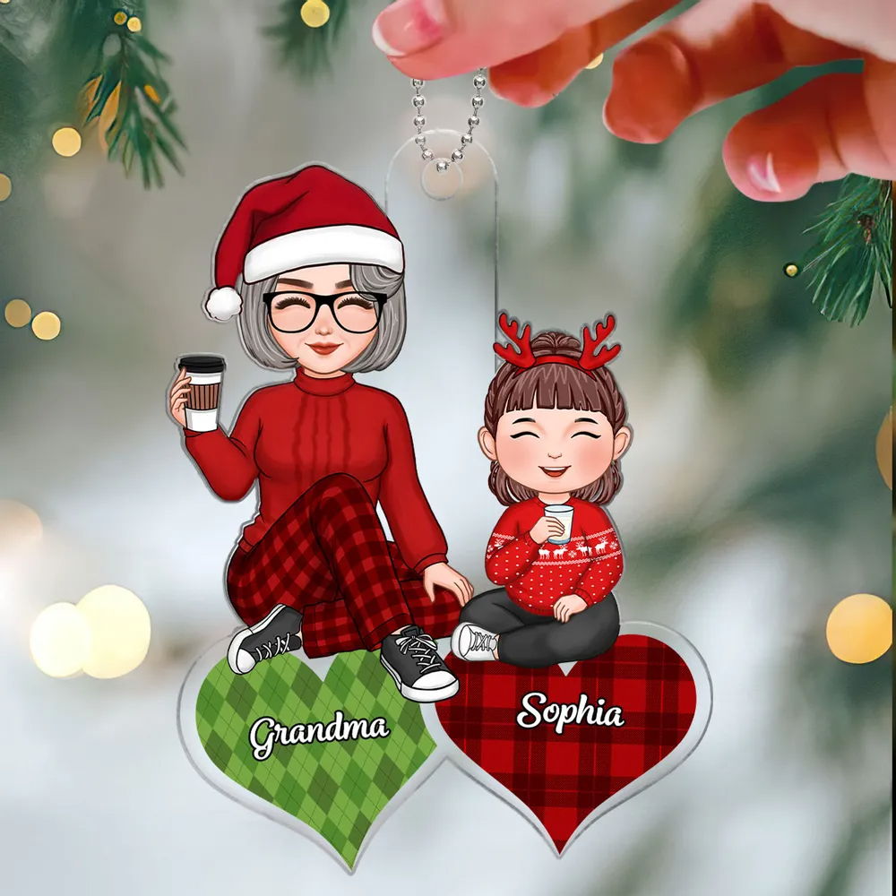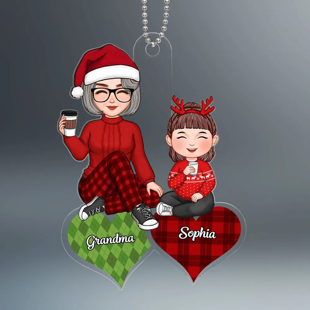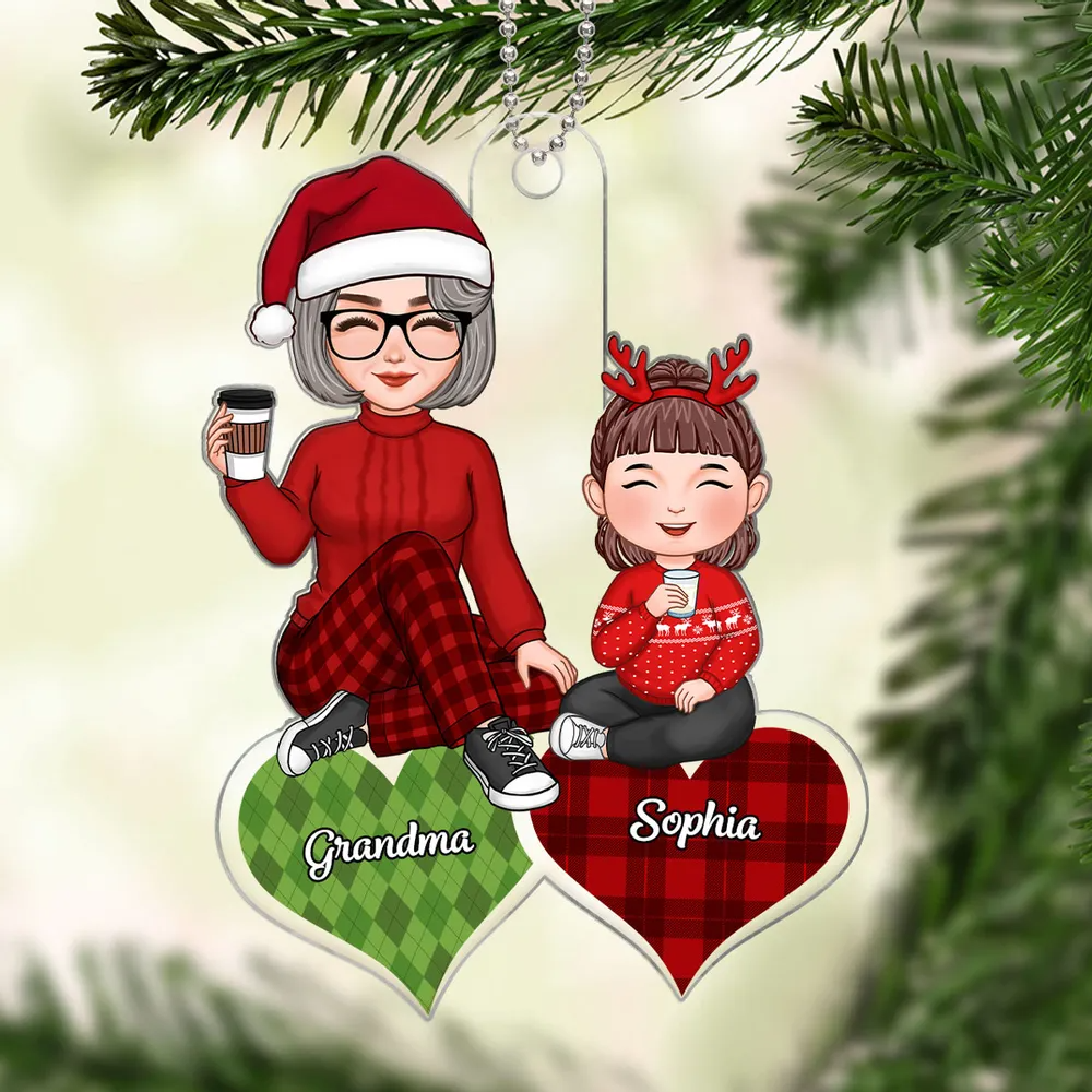 Cute Grandma Grandkid Sitting On Checkered Pattern Hearts Gift For Granddaughter Grandson Personalized Acrylic Ornament