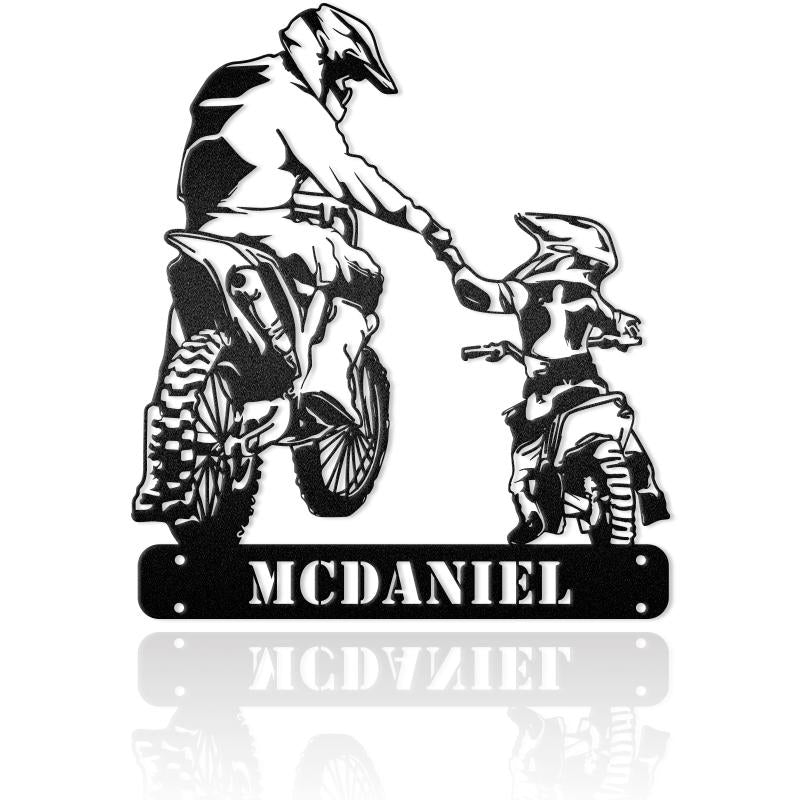 Dad And His Child Together We Ride Custom Name Metal Wall Art