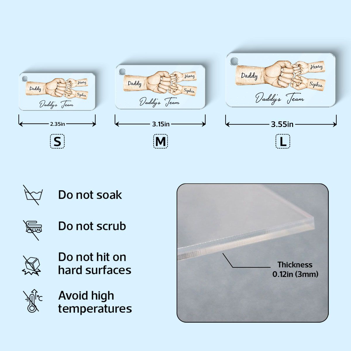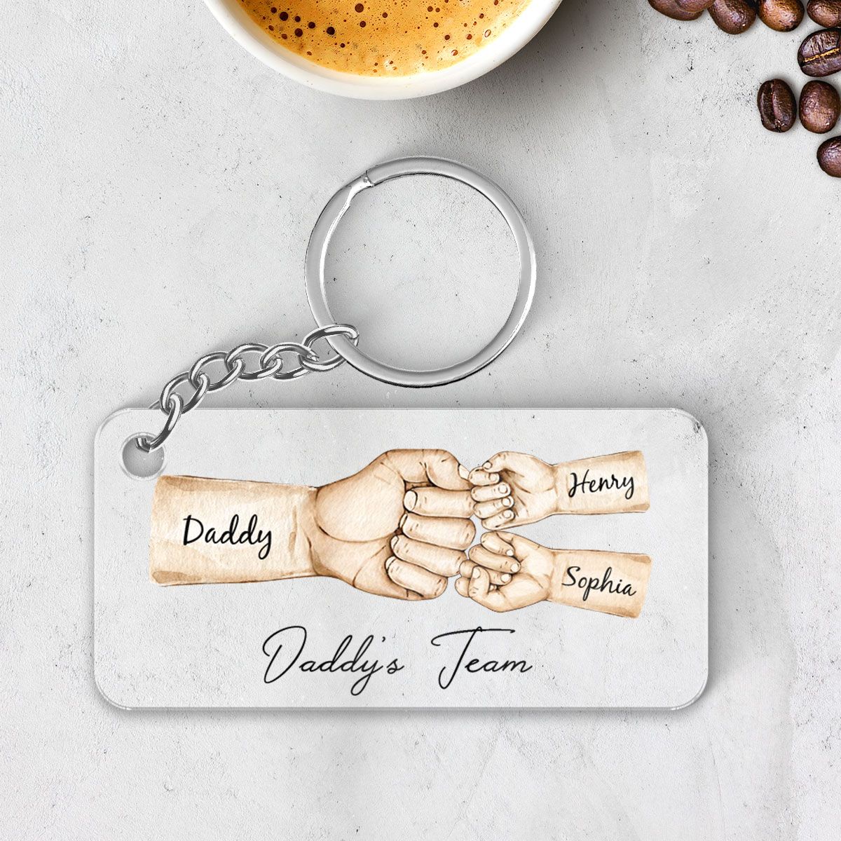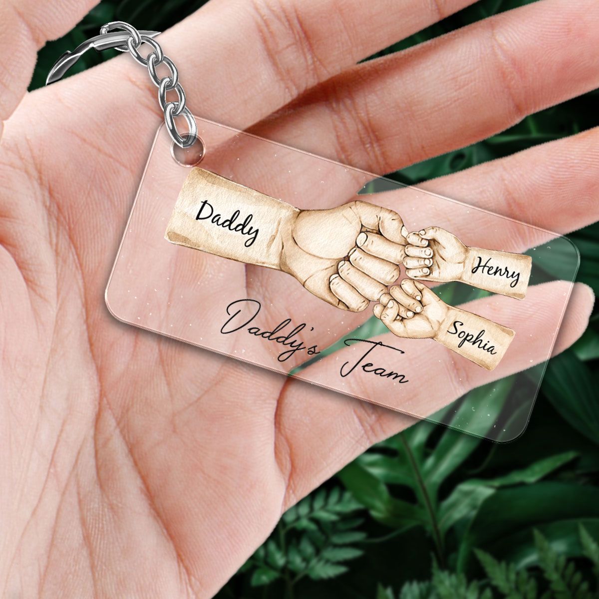 đ The Daddy's Team Fist Bump Personalized Acrylic Keychain, Father's Day Gift For Dad, For Grandpa, For Husband symbolizes the special bond between father and child. The fist bump represents camaraderie, support, and shared triumphs, making it a meaningful gift for Fatherâs Day. Itâs a modern, stylish gesture that reflects the dynamic nature of todayâs father-child relationships.đ