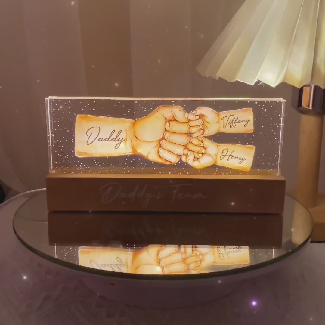 Daddy's Team Fist Bump Personalized Acrylic LED Night Light, Father's Day Gift For Dad, For Grandpa, For Husband