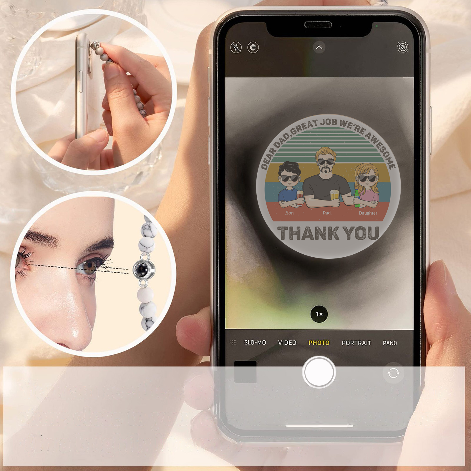 Dear Dad Grandpa Great Job We're Awesome Thank You Young - Black Natural Stone Projection Bracelet