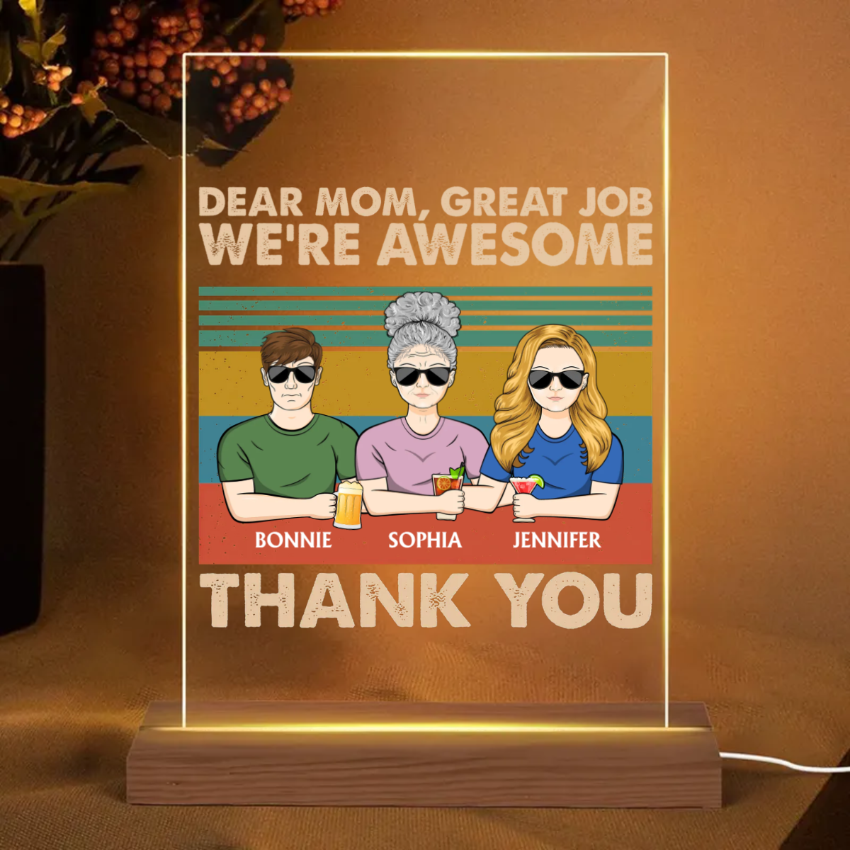 Dear Mom Mum Great Job We're Awesome Thank You - Mother Gift - Personalized Rectangle Acrylic Plaque LED Lamp Night Light
