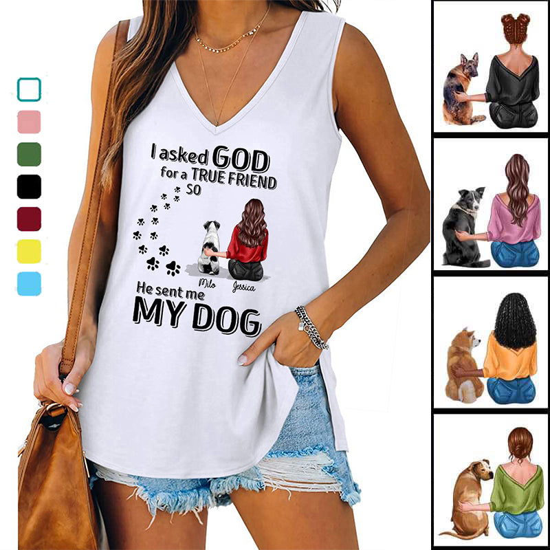 Dog Mom Asked God For True Friend Personalized Tank Top