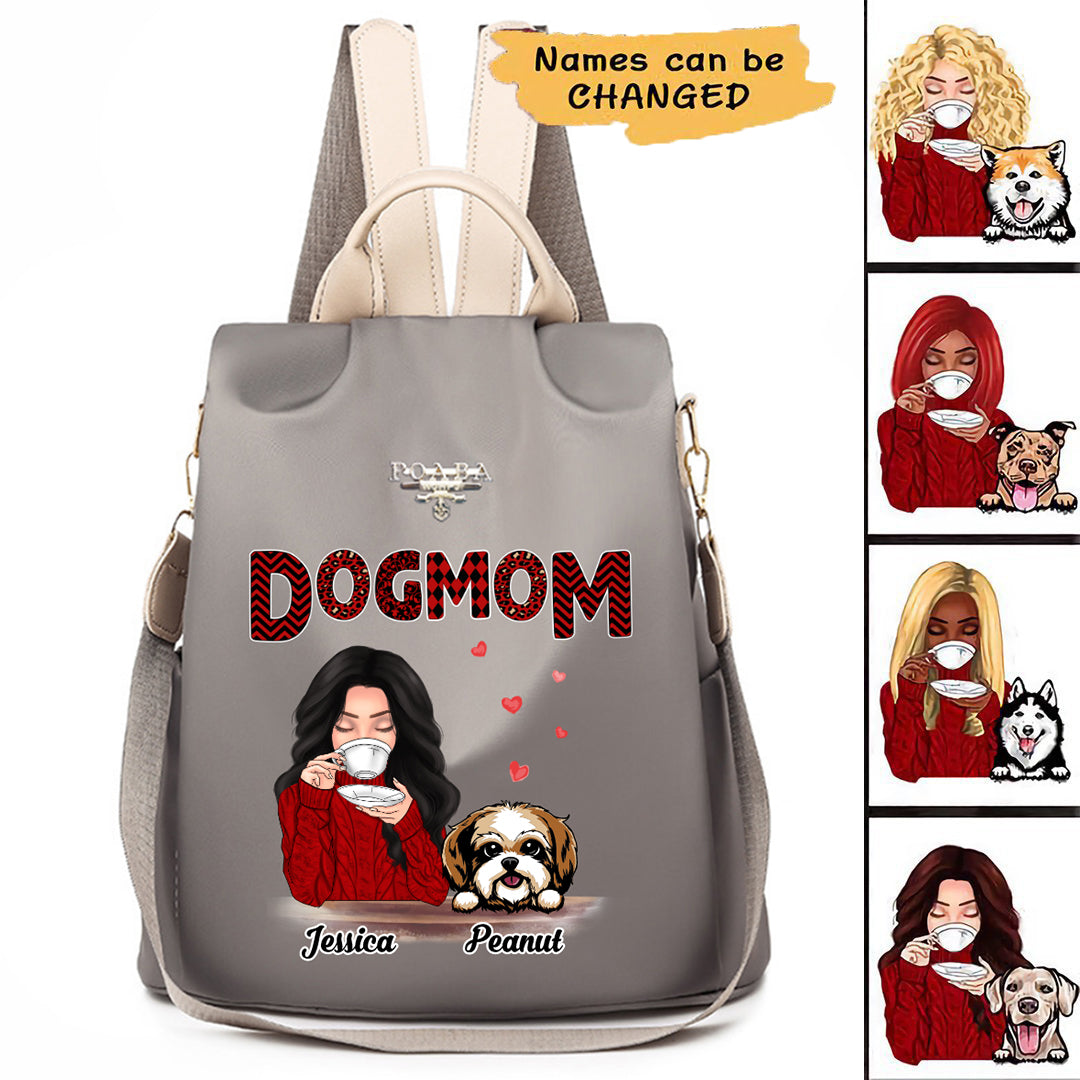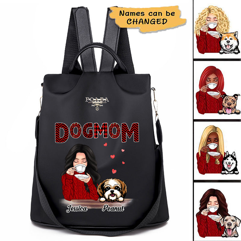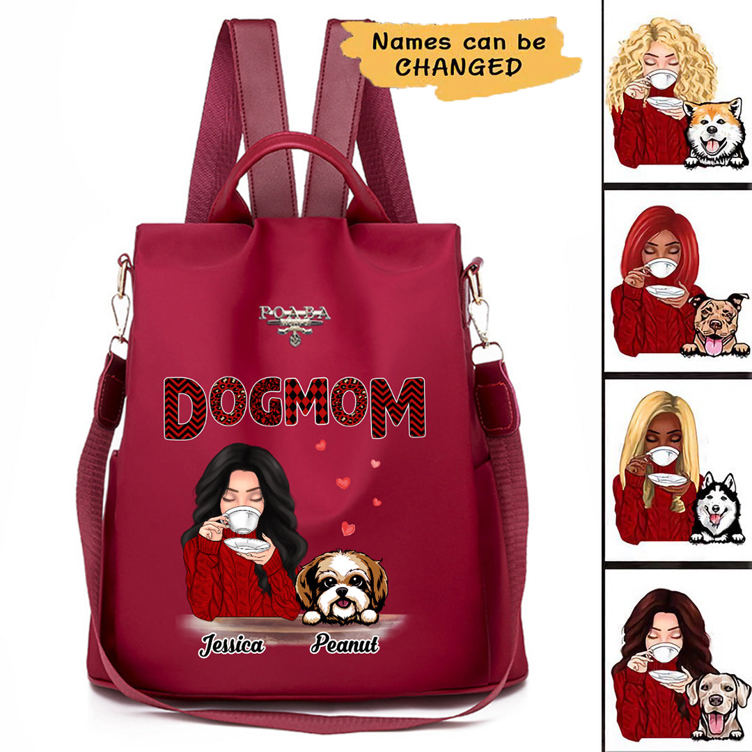Dog Mom Red Patterned Personalized Backpack