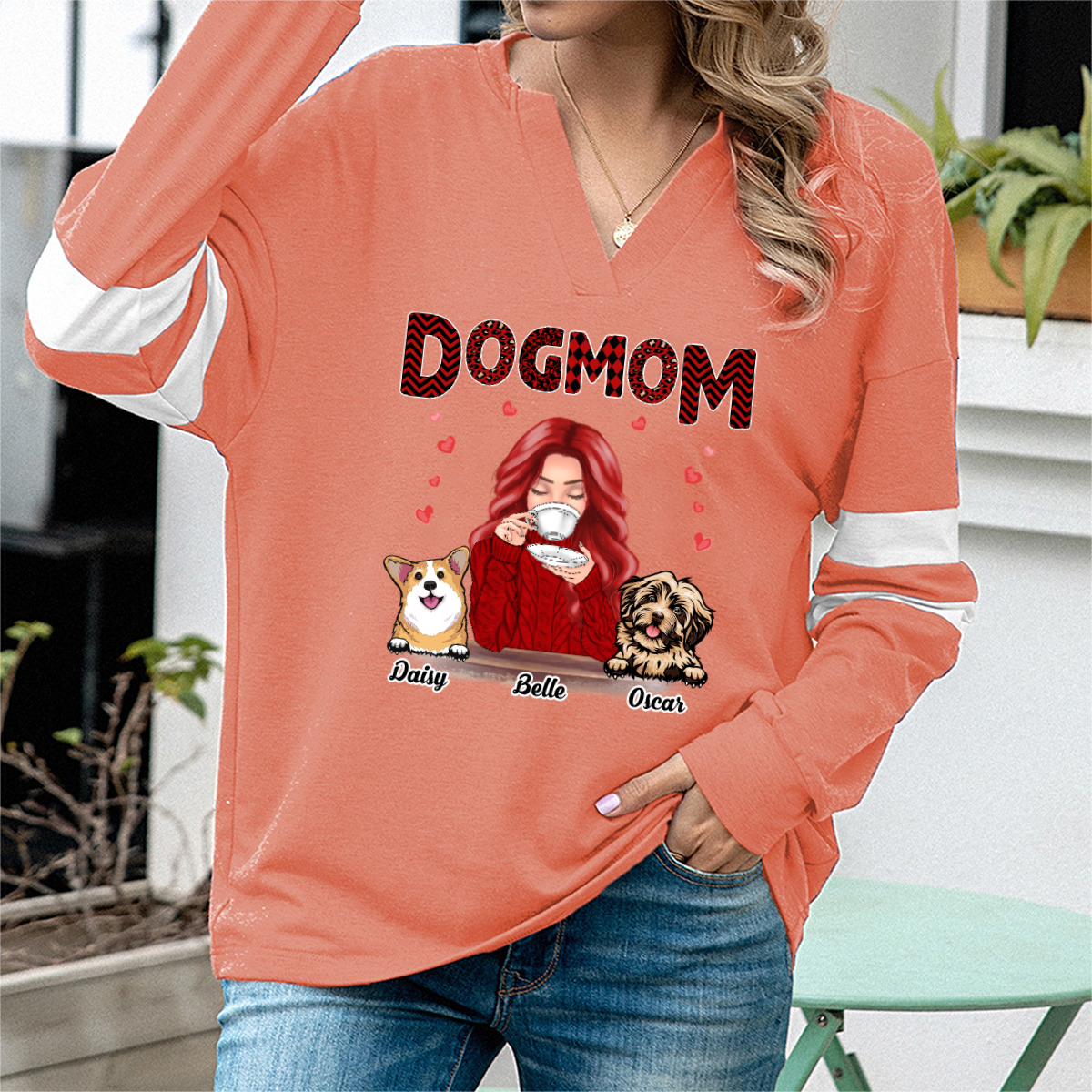 Dog Mom Red Patterned Personalized Women’s Long Sleeve Tops