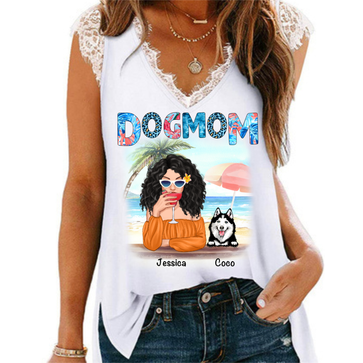 Dog Mom Summer Patterned Personalized Women Tank Top V Neck Lace