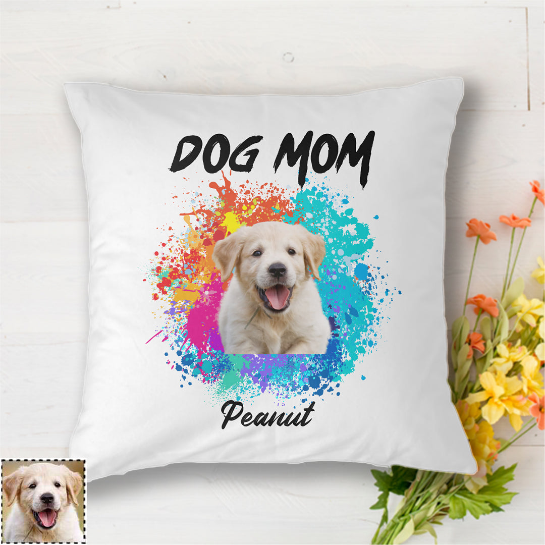 Dog Mom Watercolor Splash Dog Photo Personalized Polyester Linen Pillow