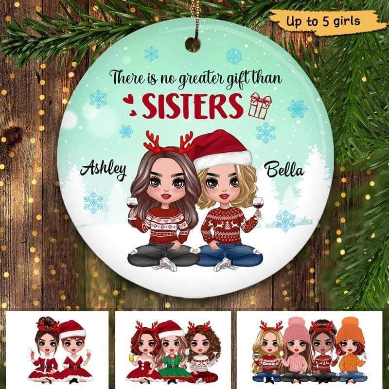Doll Besties Sisters Sitting Christmas Personalized Circle Ornament