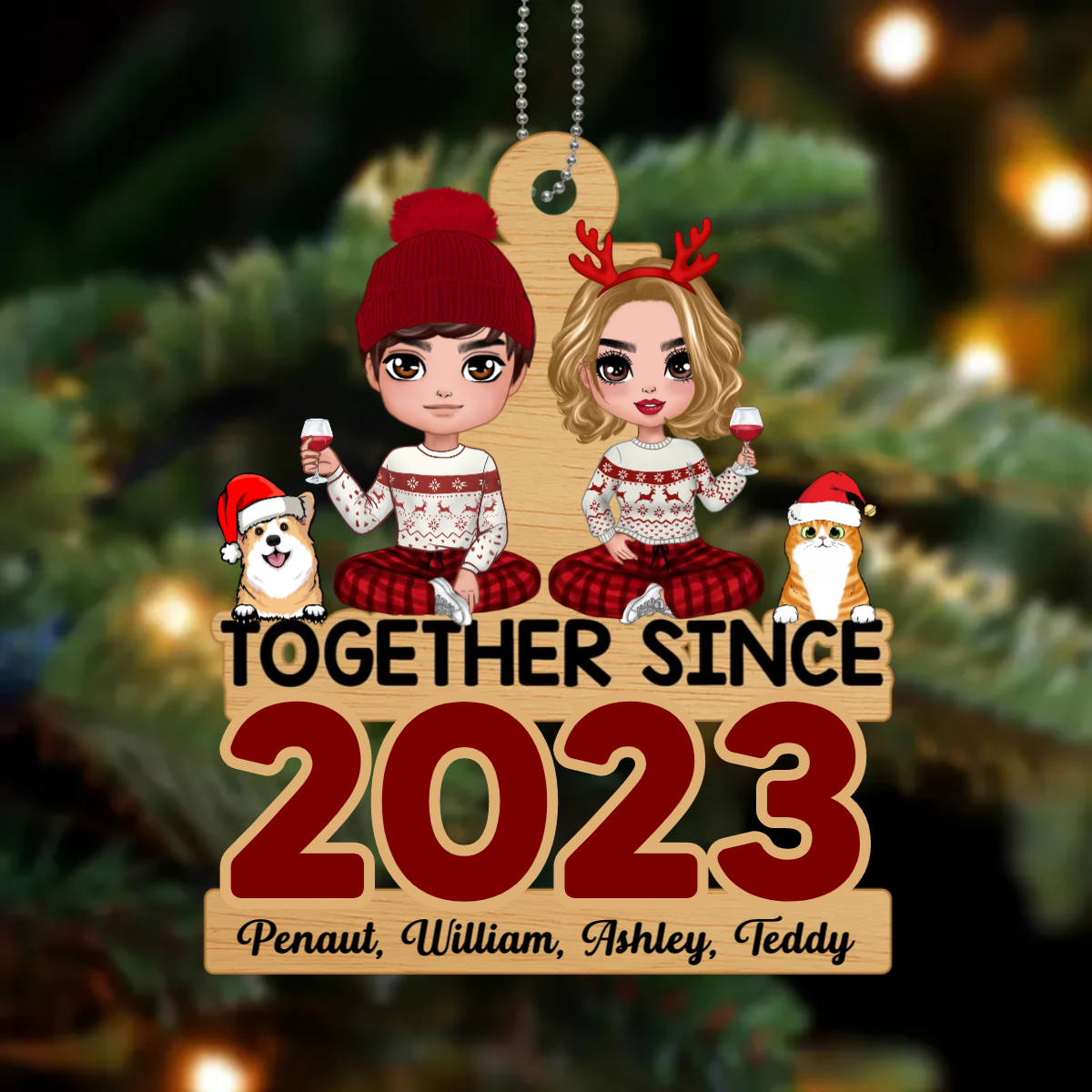 Doll Couple Sitting Together Since Dog Cat Christmas Personalized Metal Ornament