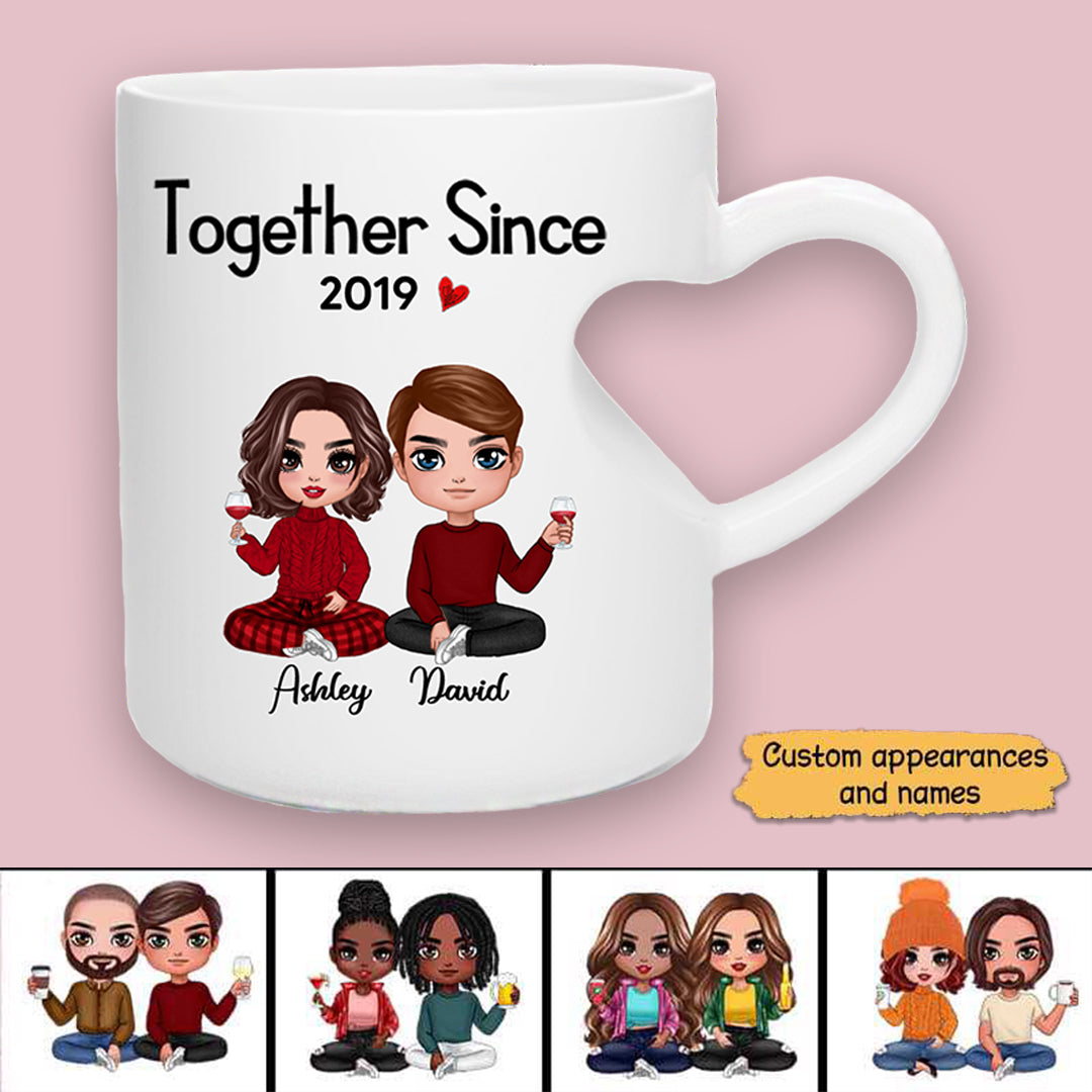 Doll Couple Sitting Valentine's Day Gift For Him For Her Personalized Heart Mug