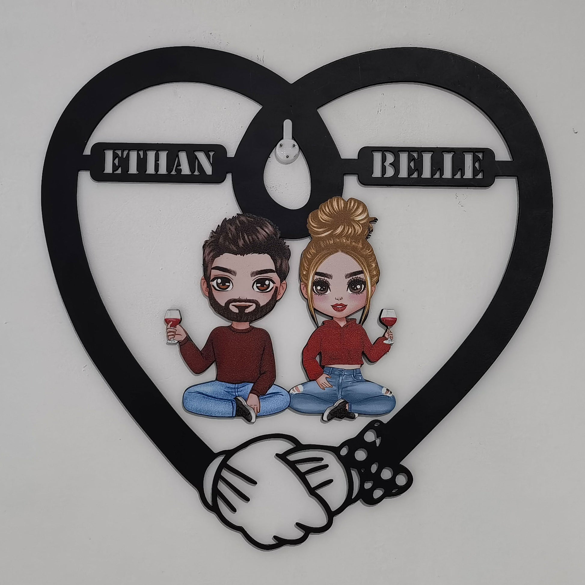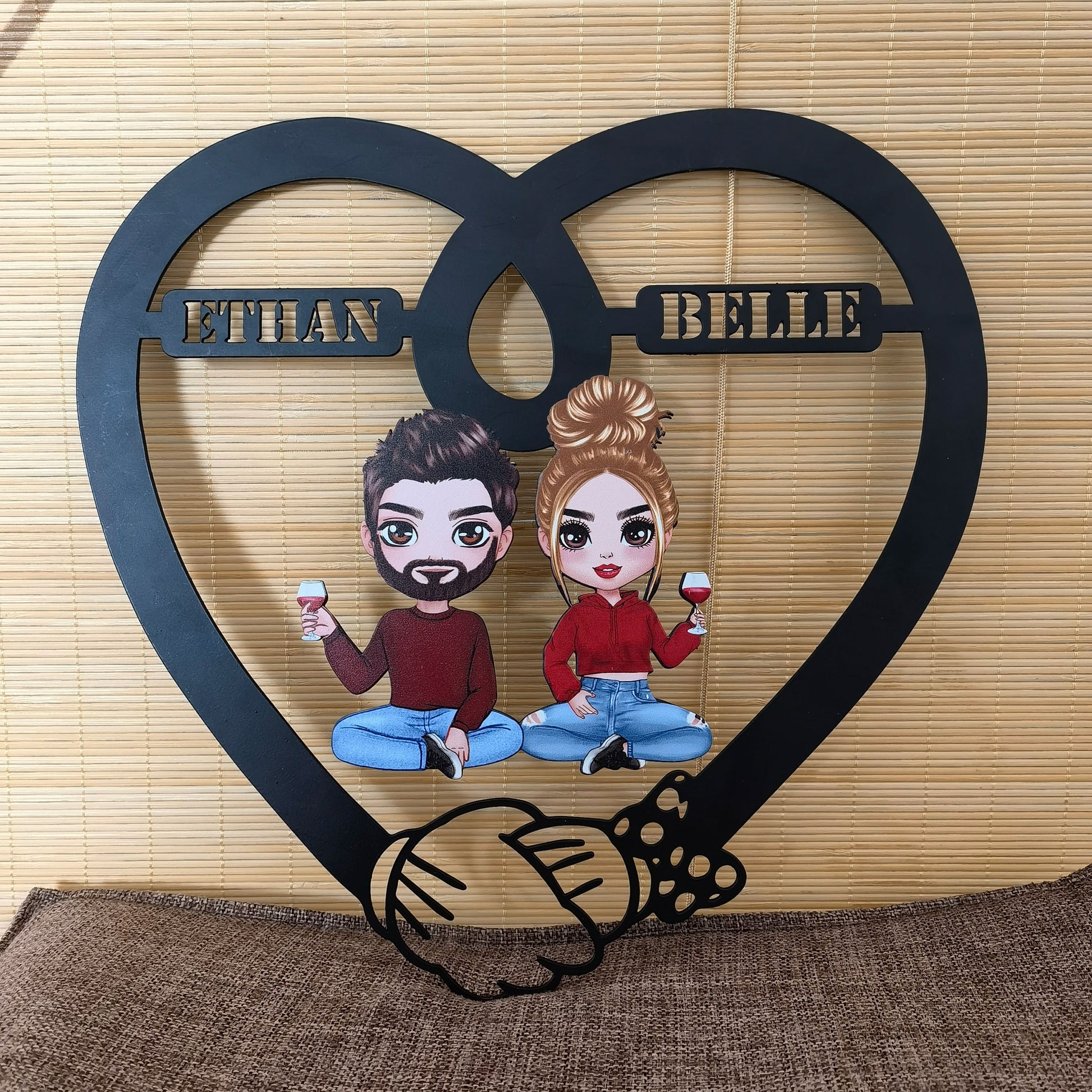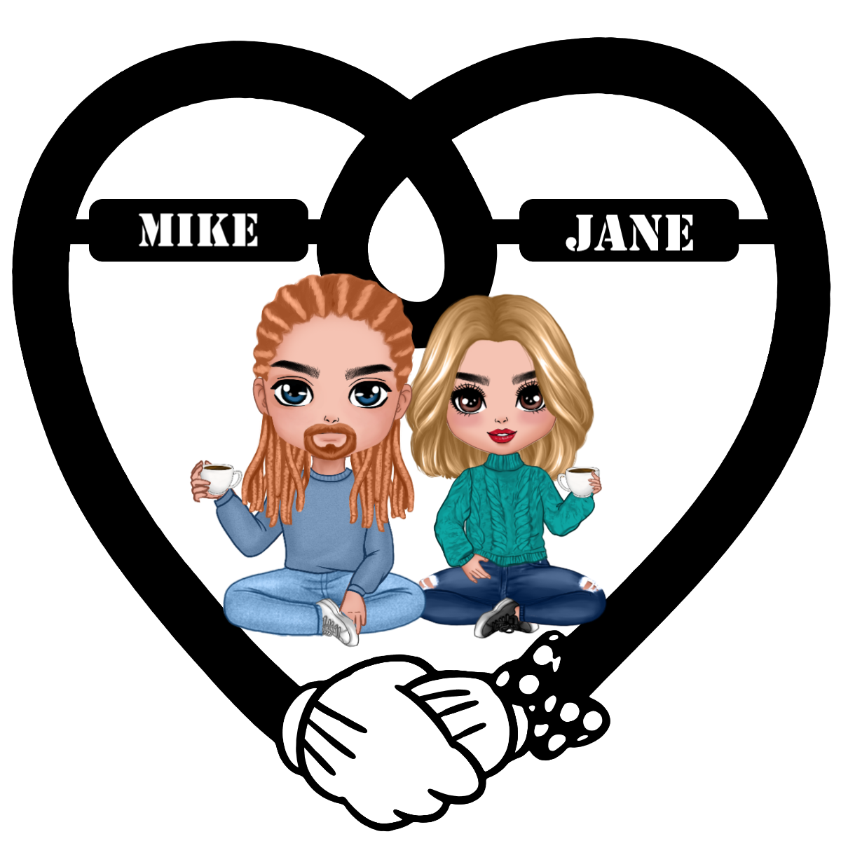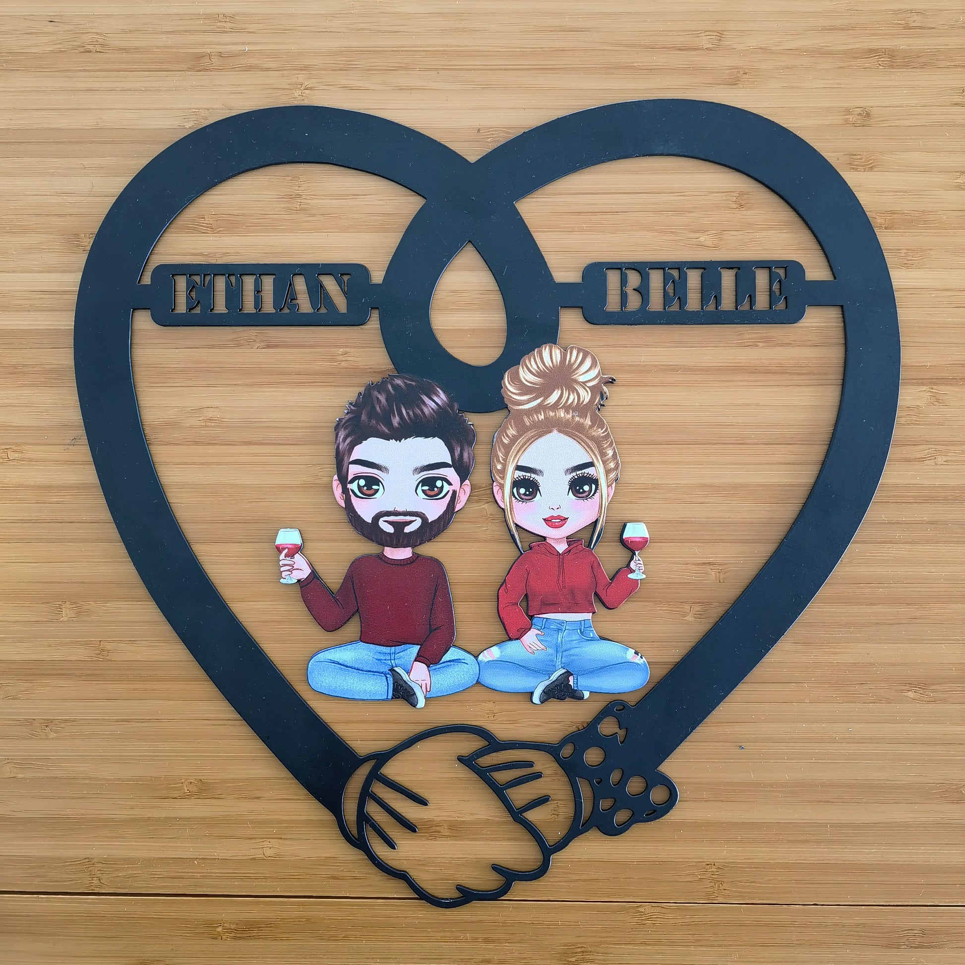 Doll Couple Sitting Gift For Him For Her Personalized Metal Wall Art