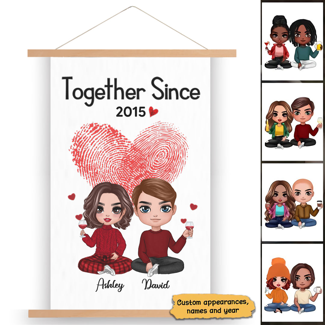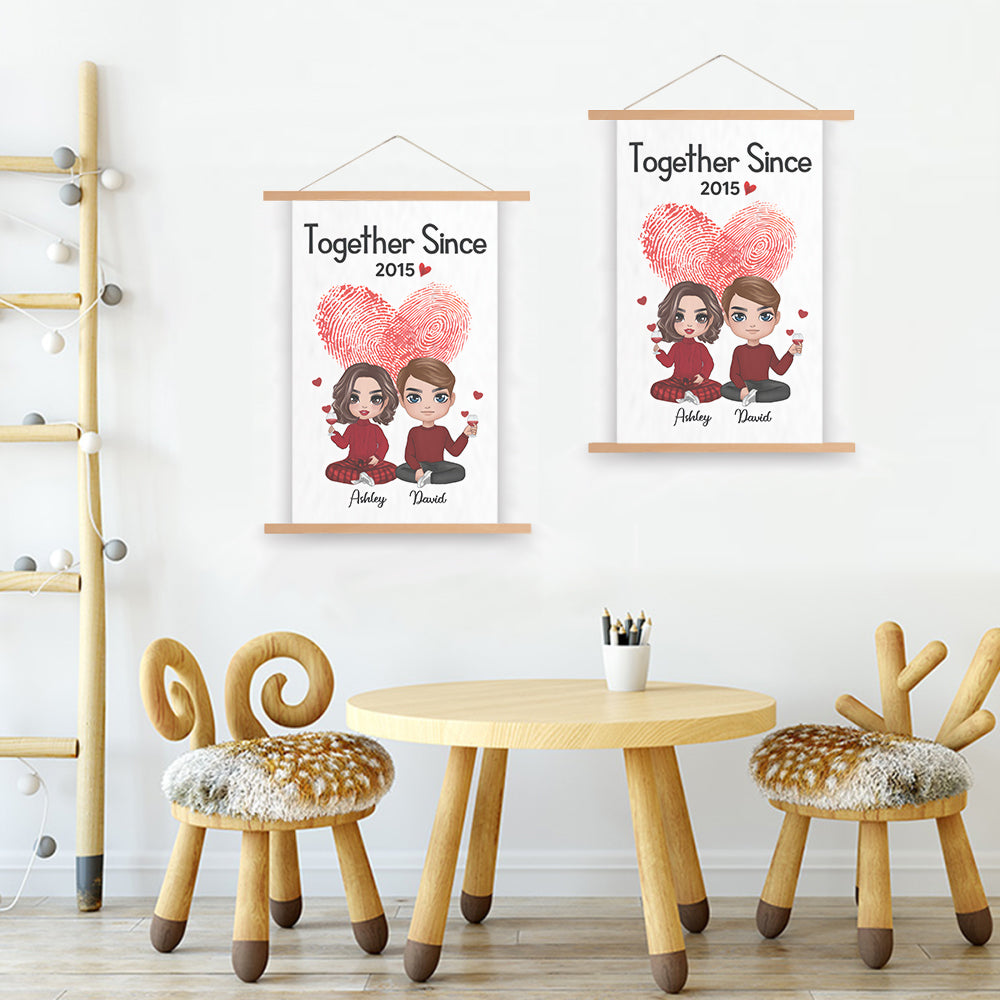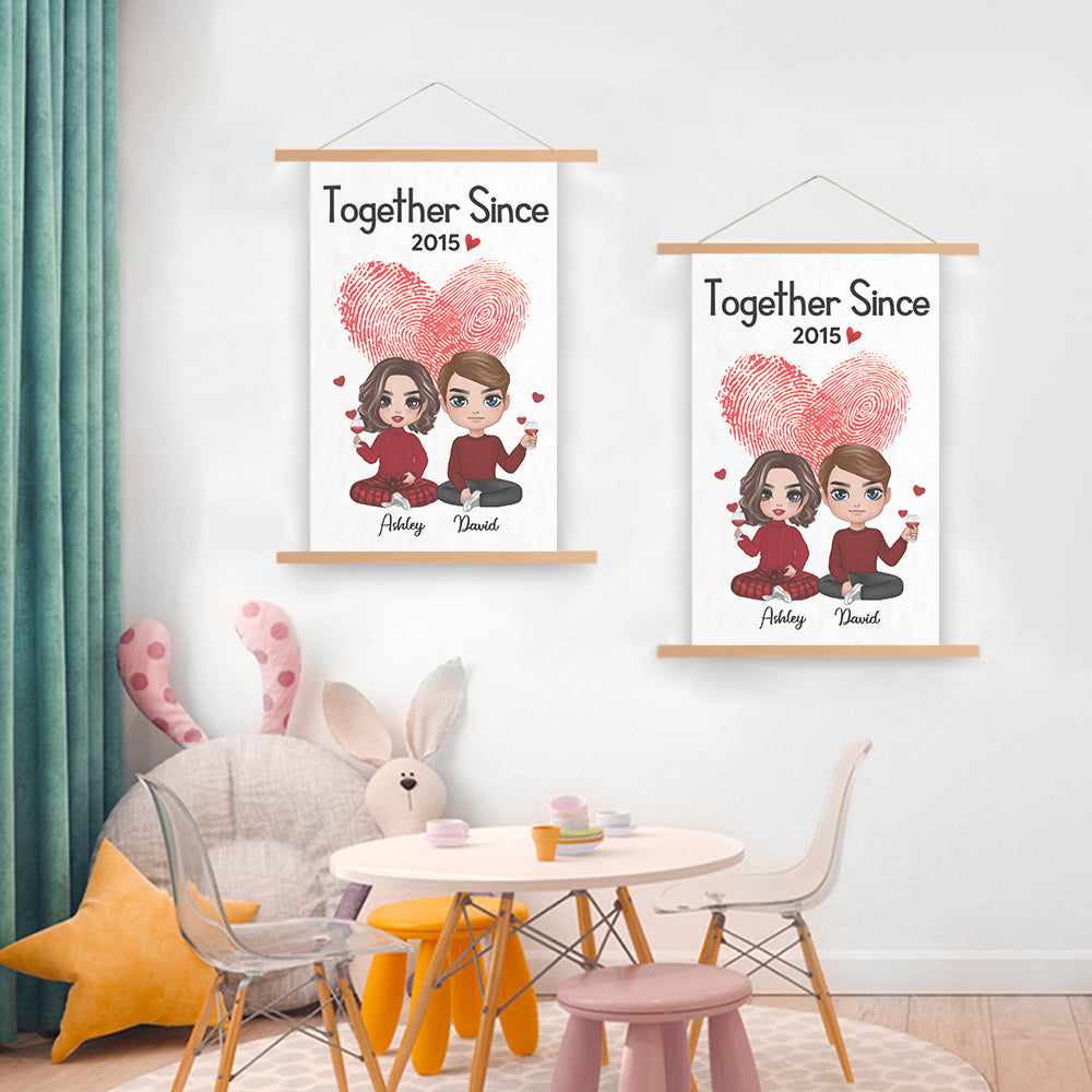 Doll Couple Sitting Valentine's Day Gift Personalized Wall Scroll Painting With Wooden Poster Hanger