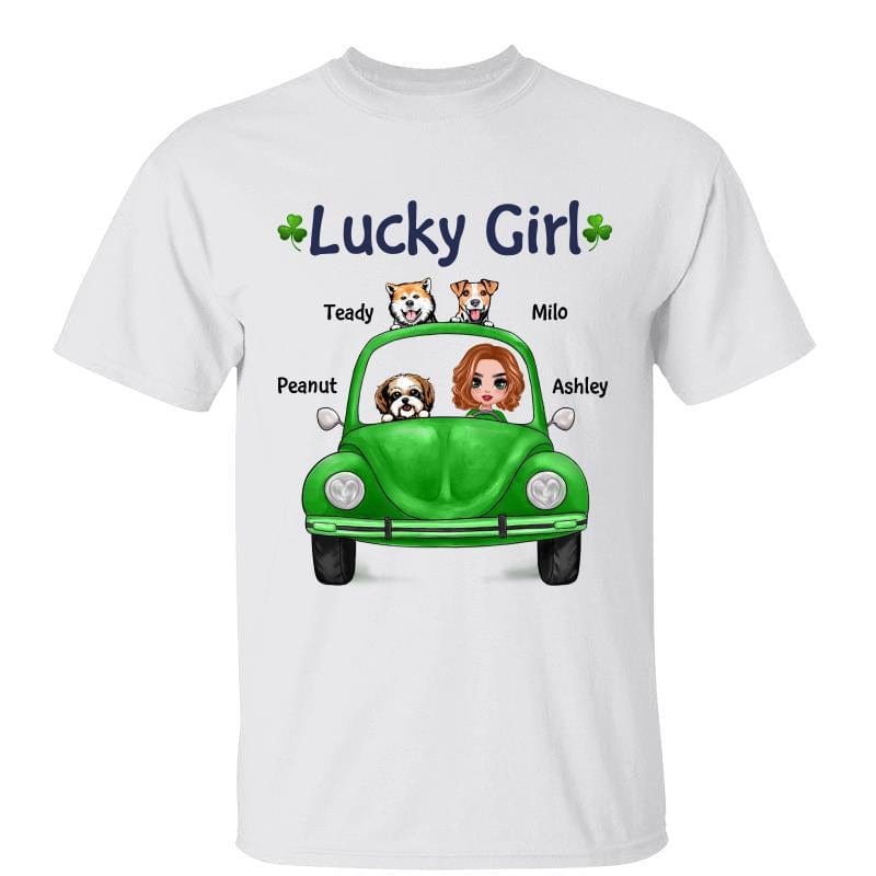Doll Girl And Dogs In Car Lucky Girl St. Patrick‘s Day Irish Personalized Shirt
