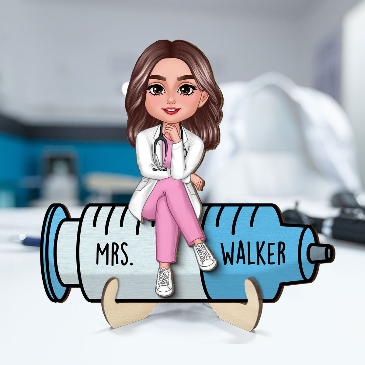 Doll Nurse Sitting Personalized 2-Layer Wooden Plaque