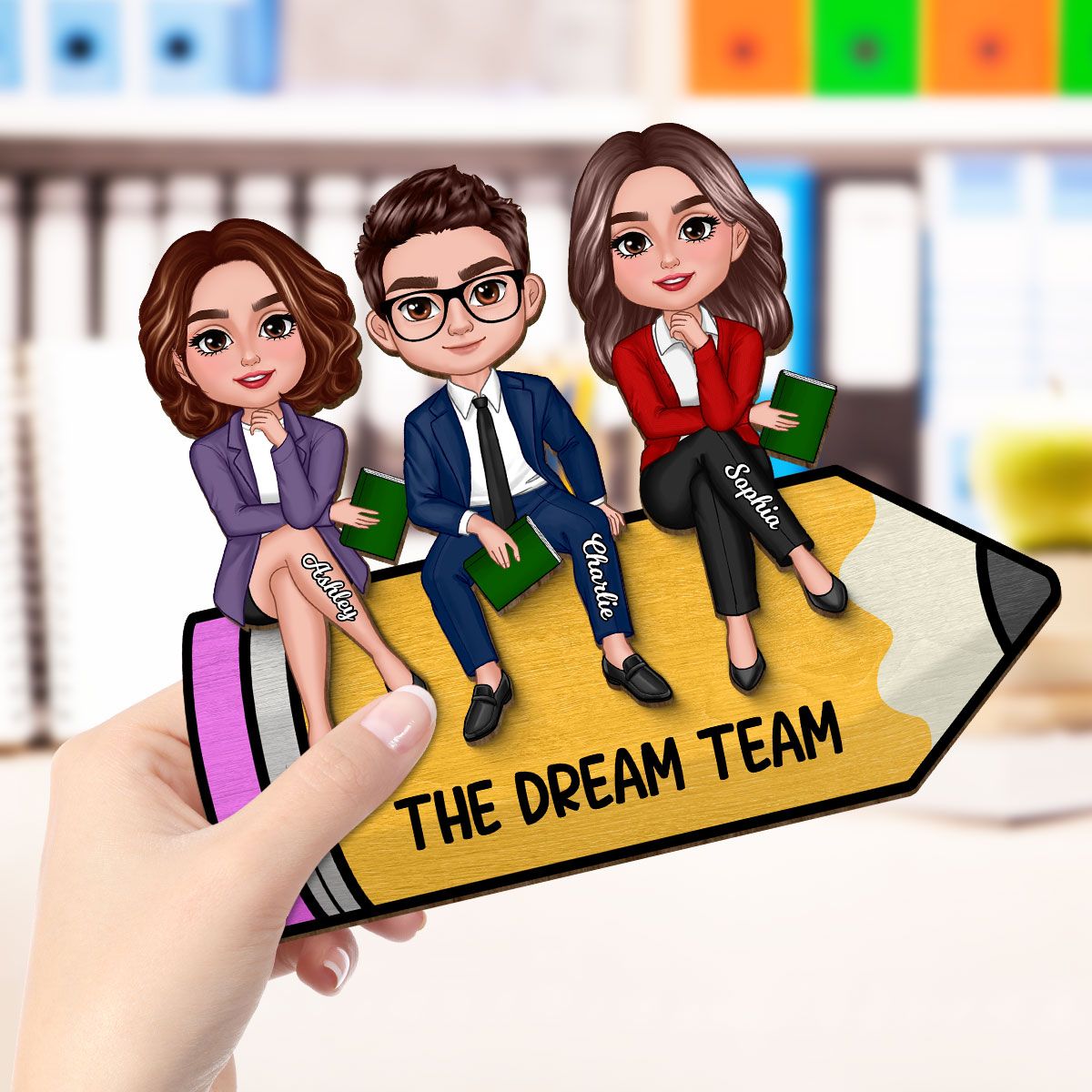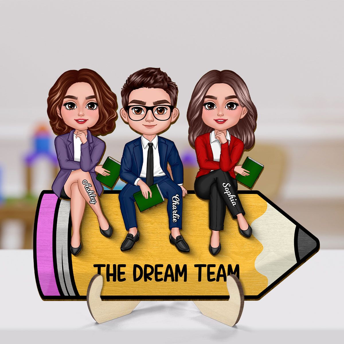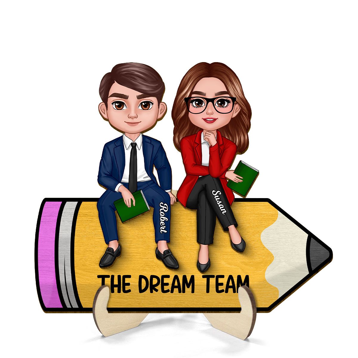 Doll Teacher Best Friends Colleagues Sitting On Pencil Personalized 2-Layer Wooden Plaque, Back To School Gift, Teacher Appreciation Gift, Classroom Decor