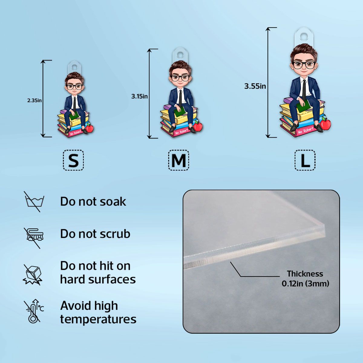 Doll Teacher Sitting On Books Personalized Acrylic Keychain