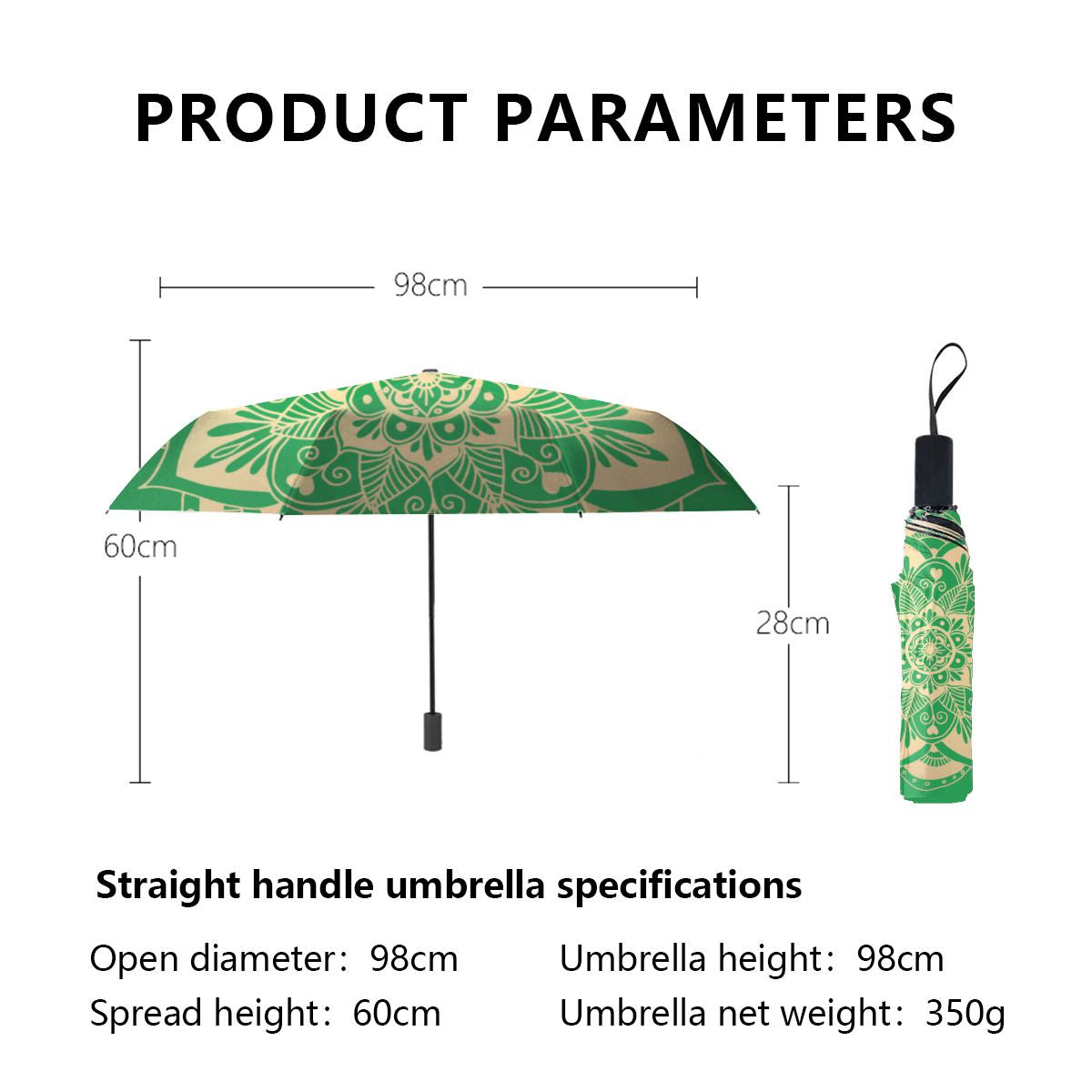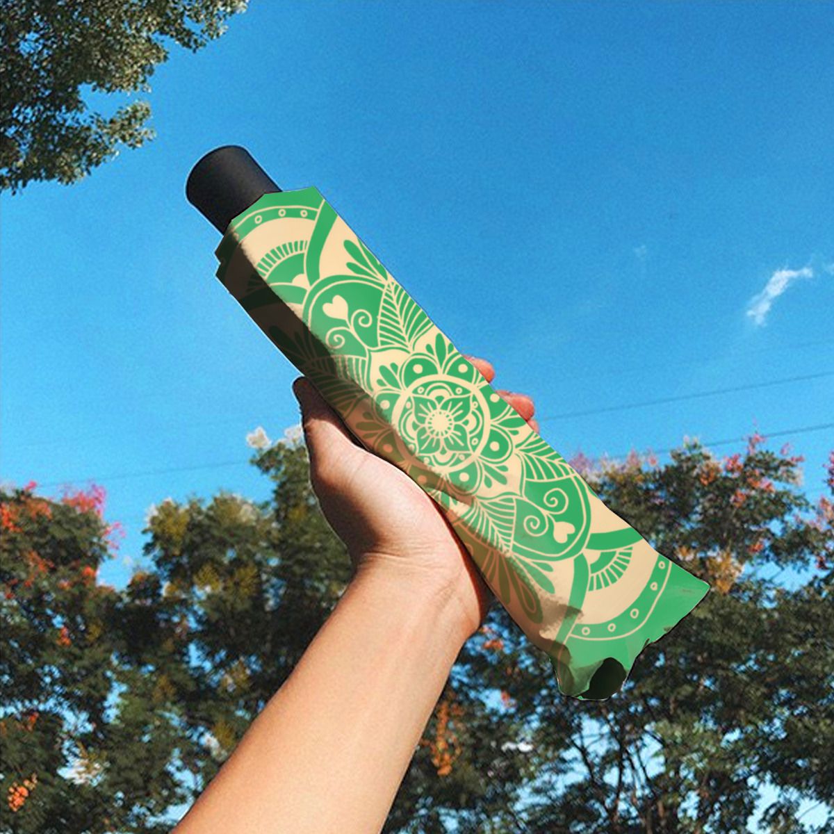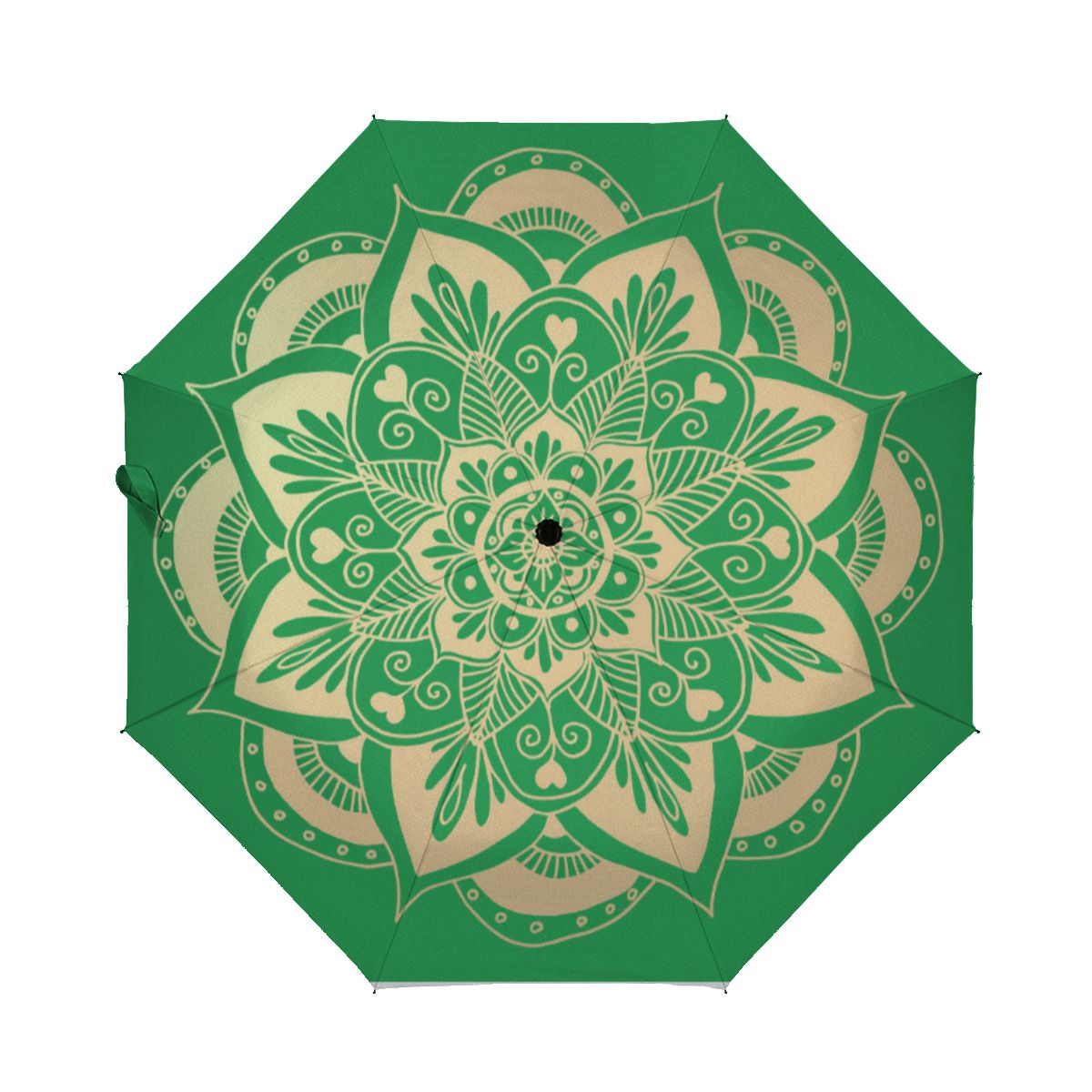 Elegant Green And Gold Mandala Boho Christmas Brushed Polyester Umbrella No.RL2ZBQ