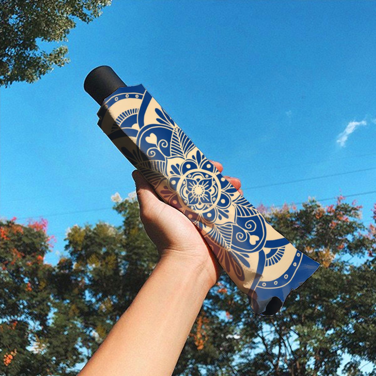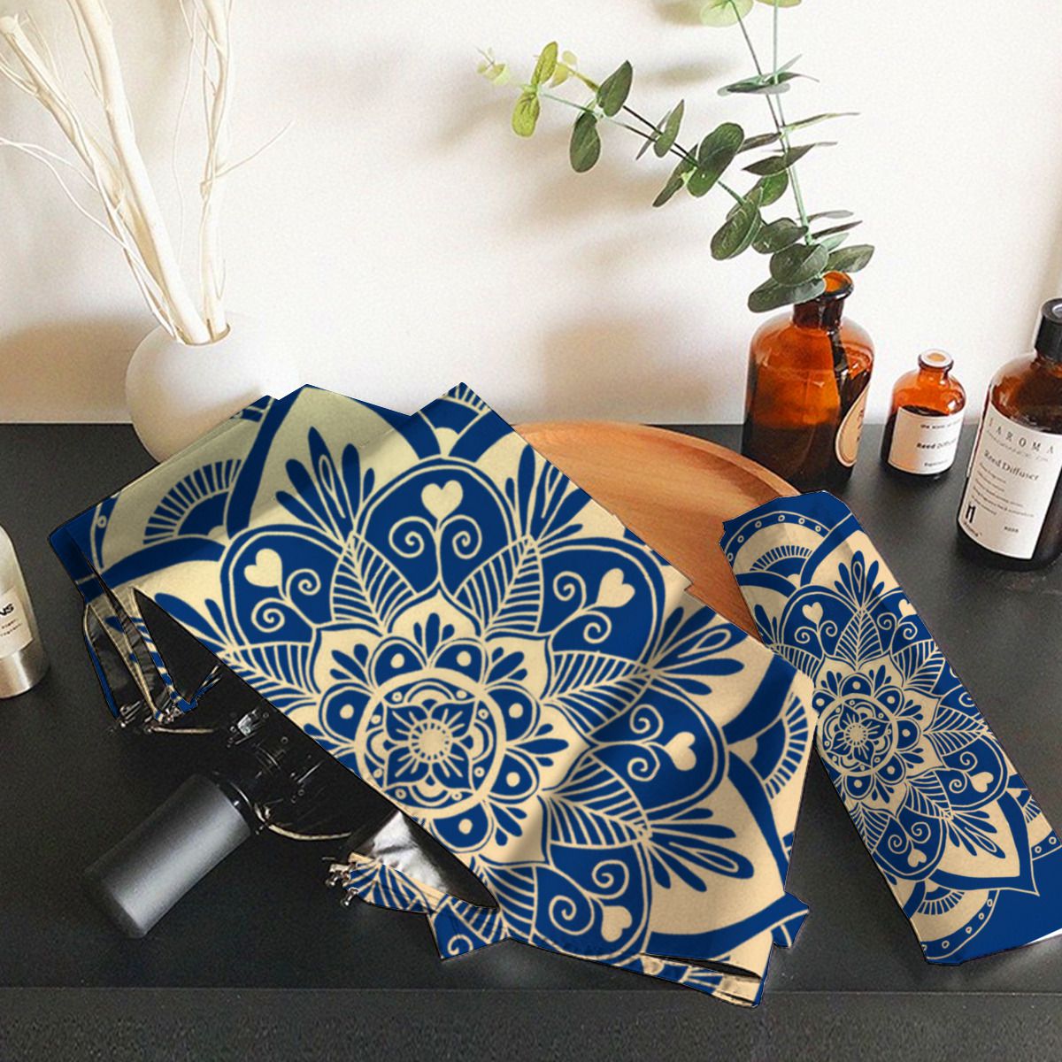 Elegant Navy Blue Gold Mandala Boho Christmas Brushed Polyester Umbrella No.XG8QER