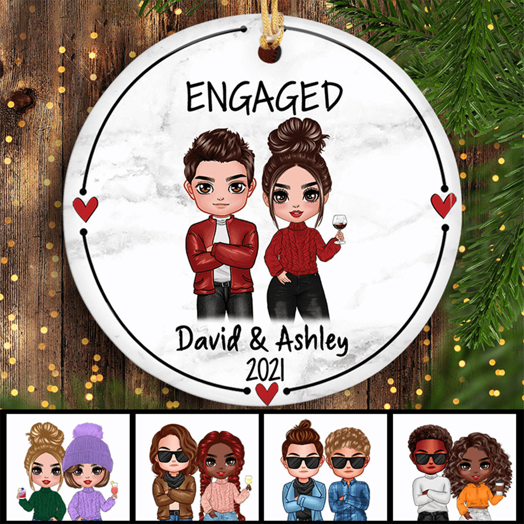 Engaged Married Doll Couple Wedding Anniversary Personalized Circle Ornament