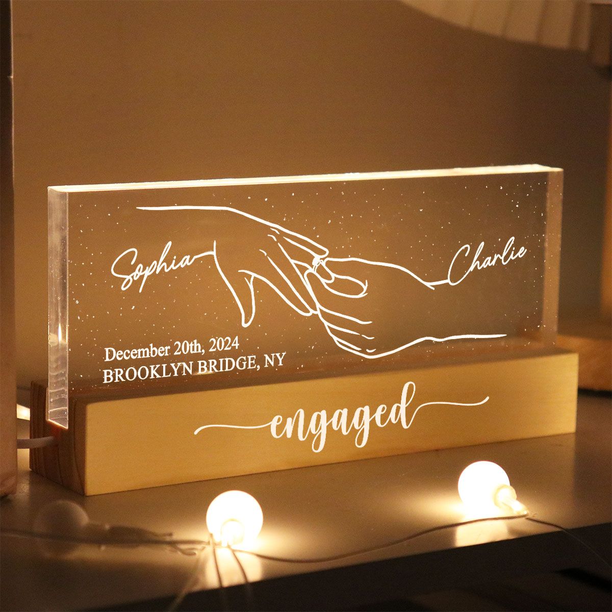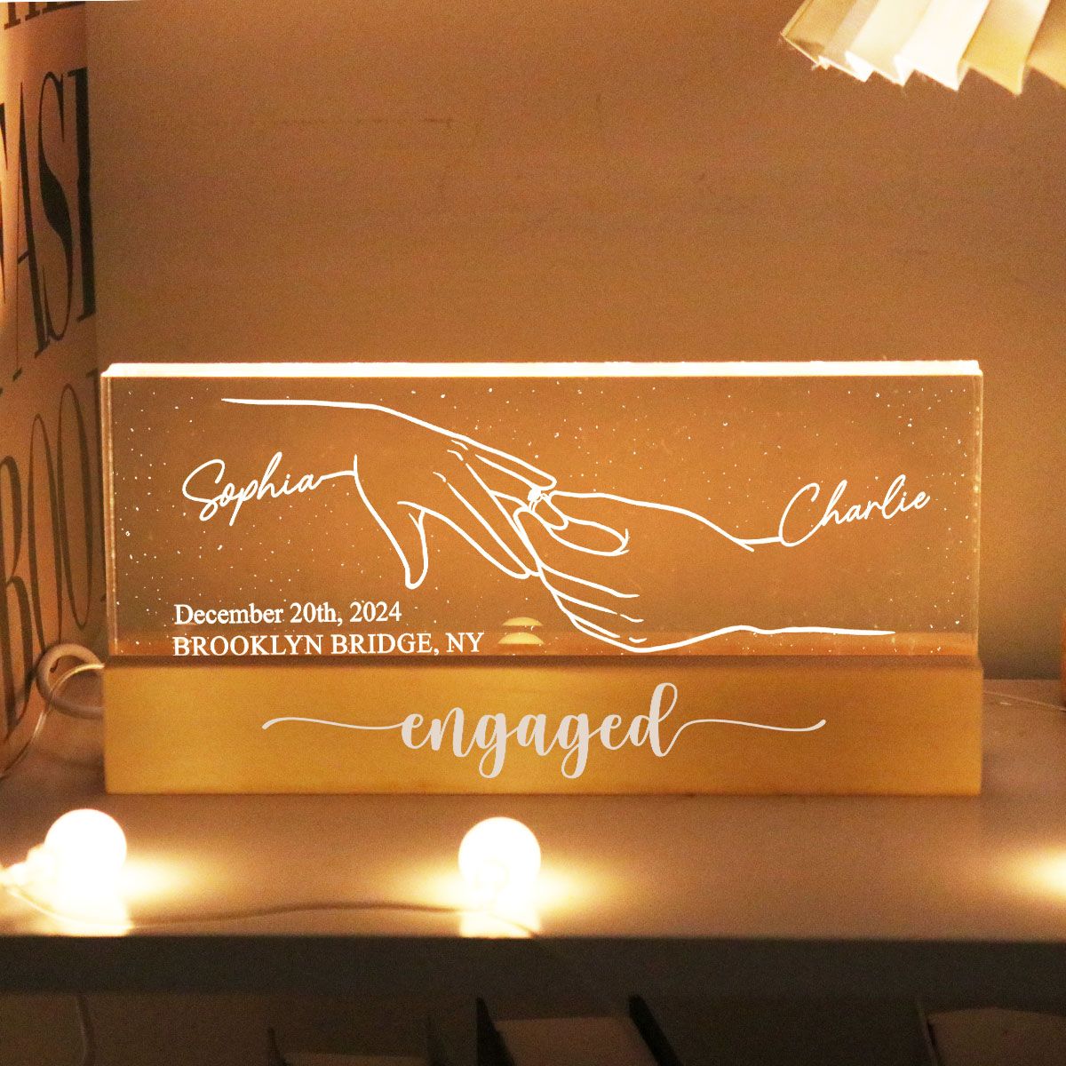 Engagement Keepsake Couple Hands Outline Personalized Block LED Plaque