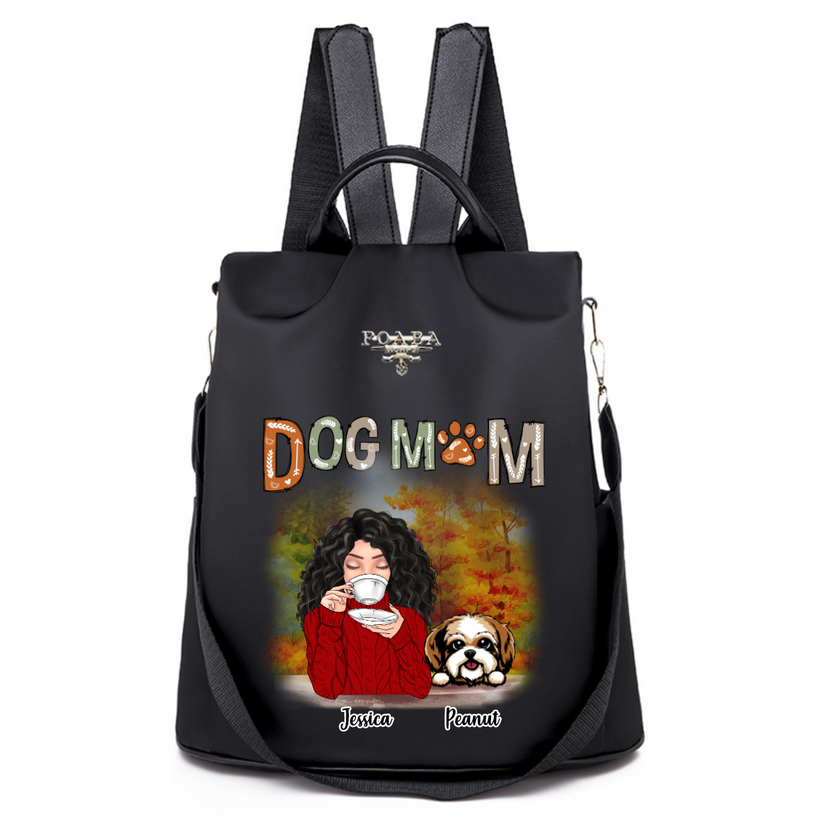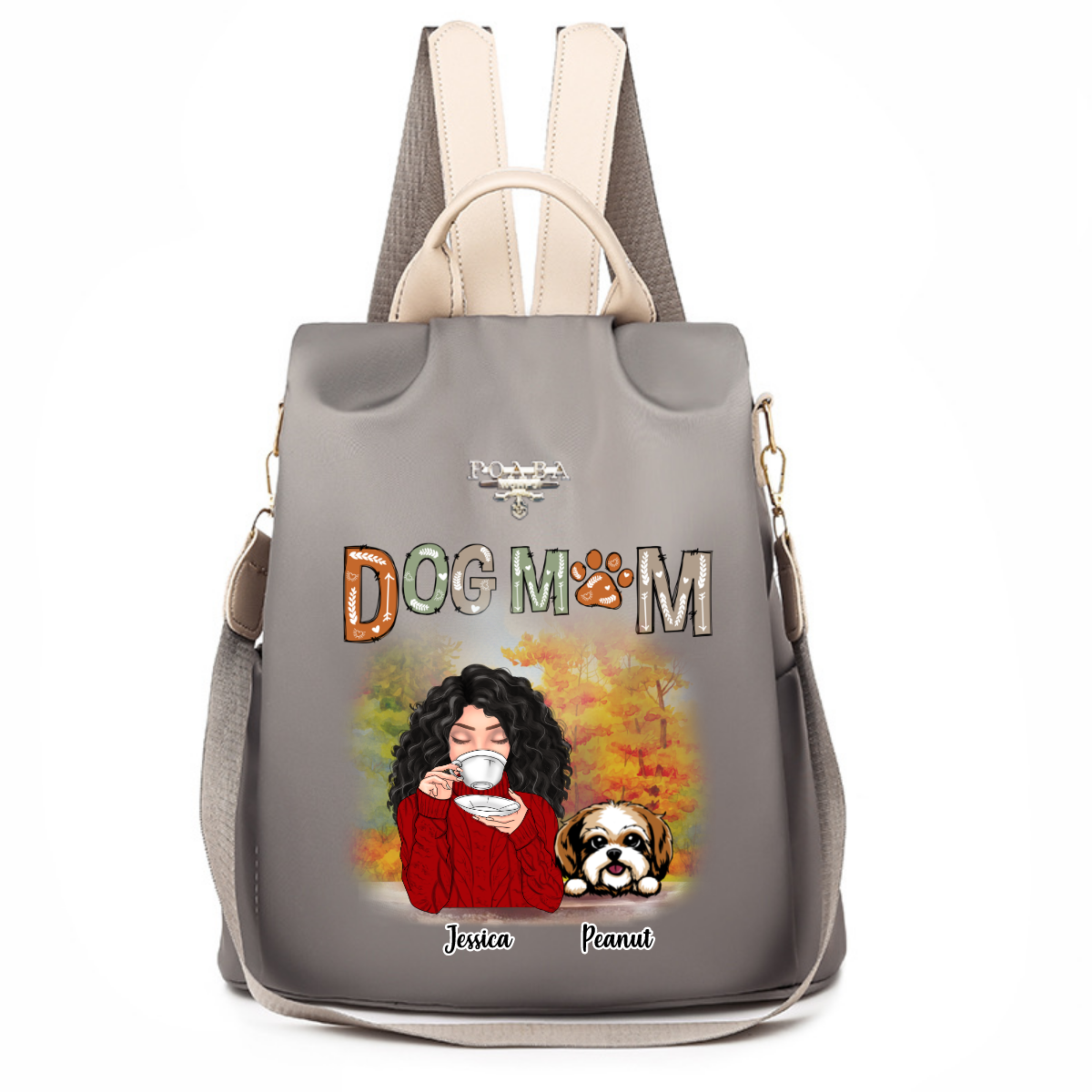 Fall Season Coffee Girl Dog Mom Personalized Backpack