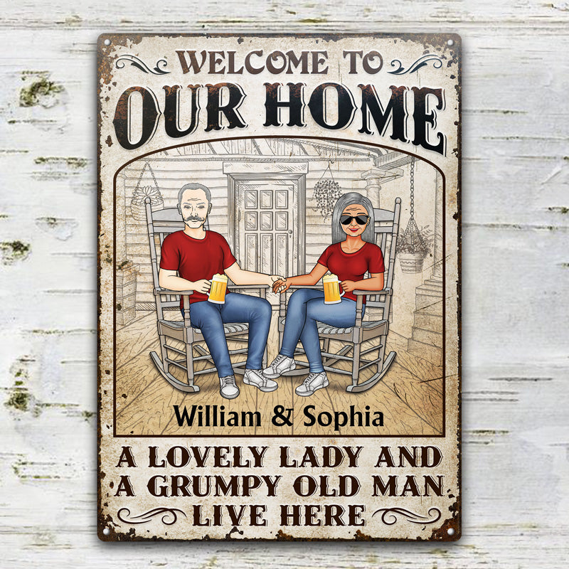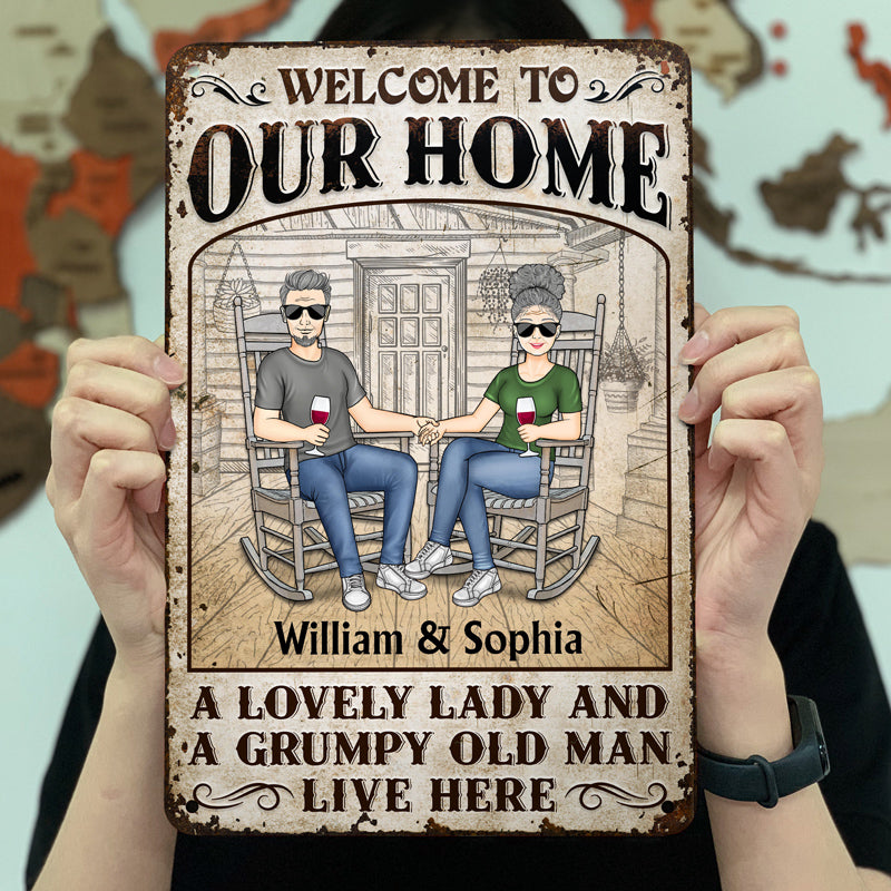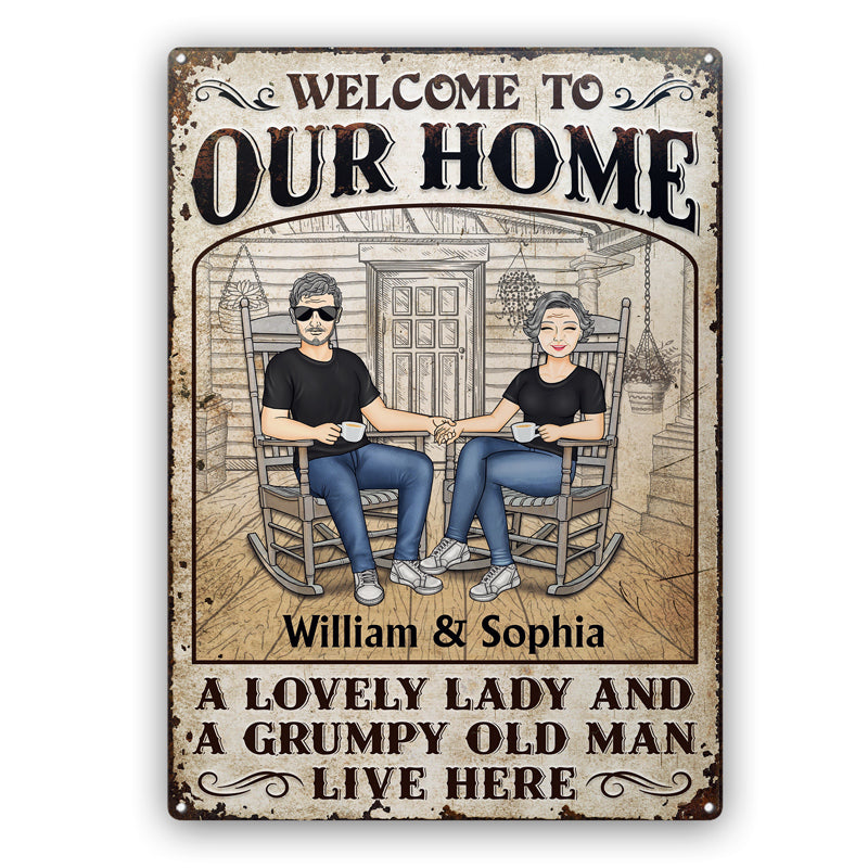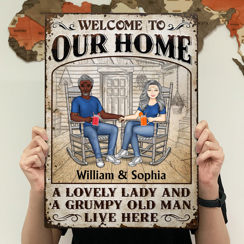 Family Couple A Lovely Lady And A Grumpy Old Man Live Here - Gift For Couples - Personalized Custom Classic Metal Signs