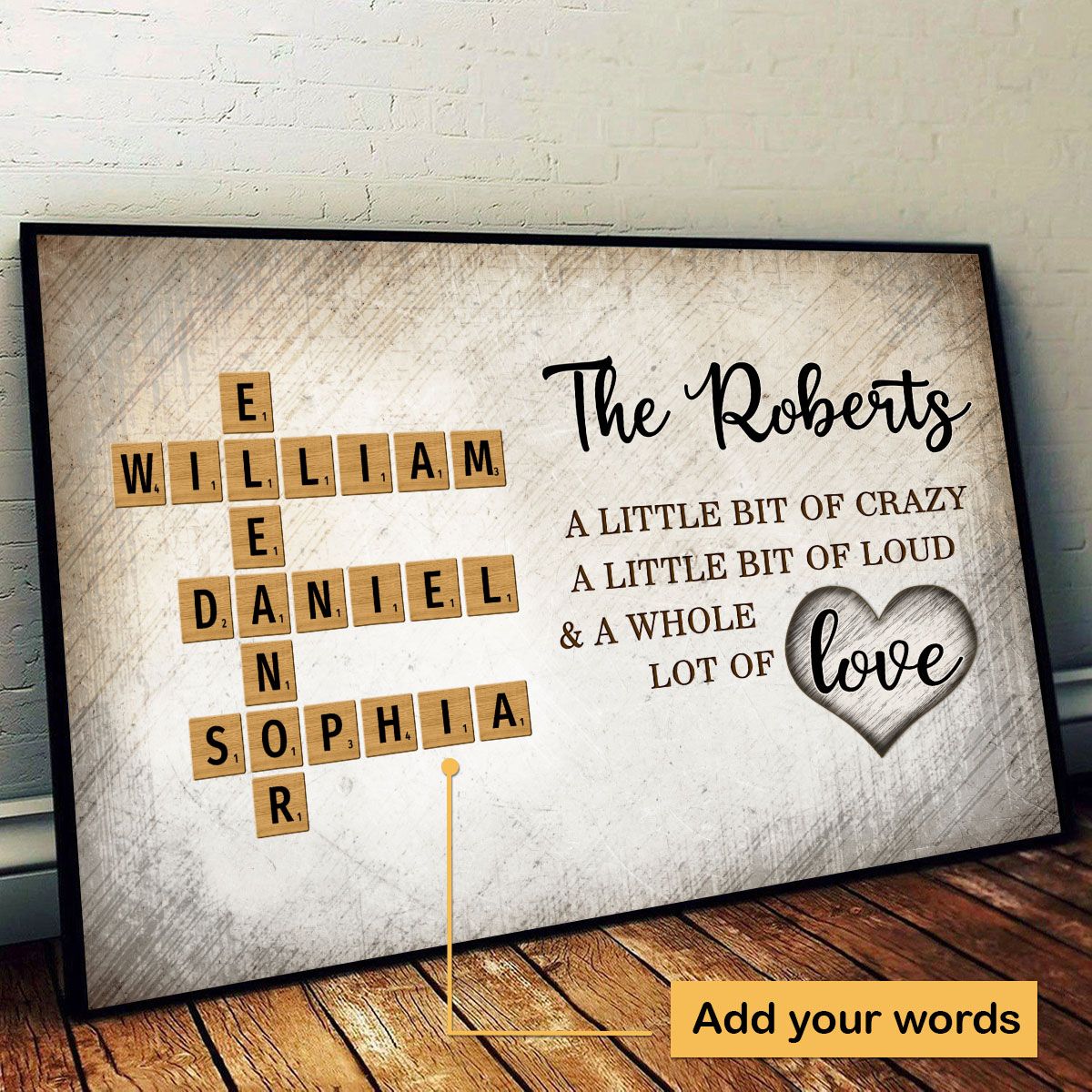 Family Whole Lot Of Love Crossword Puzzle Art - Captured In A Moment, Cherished For A Lifetime Personalized Poster