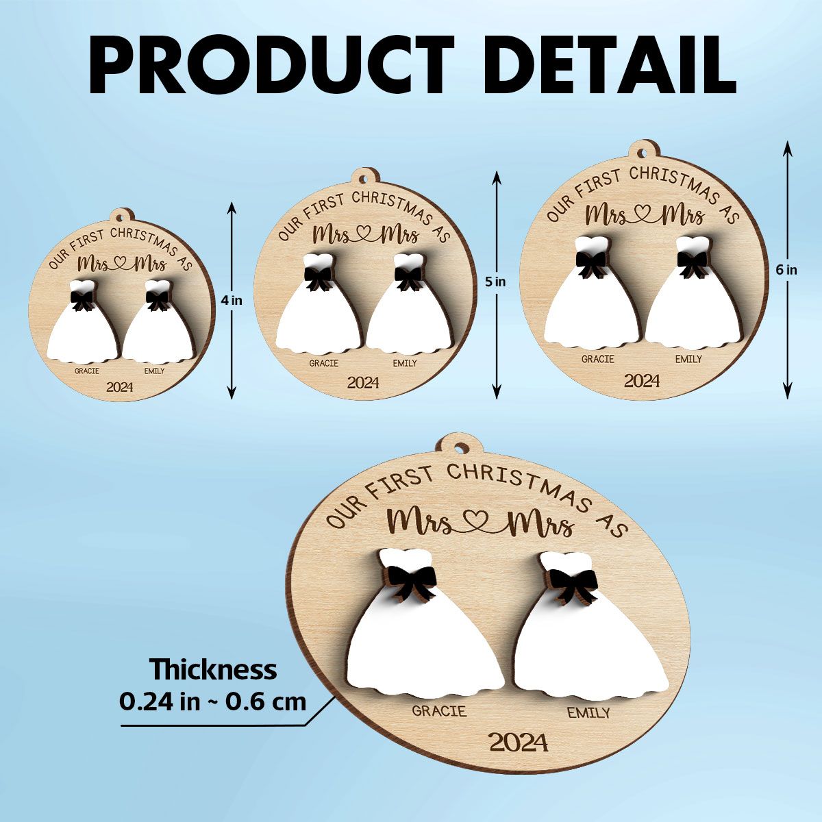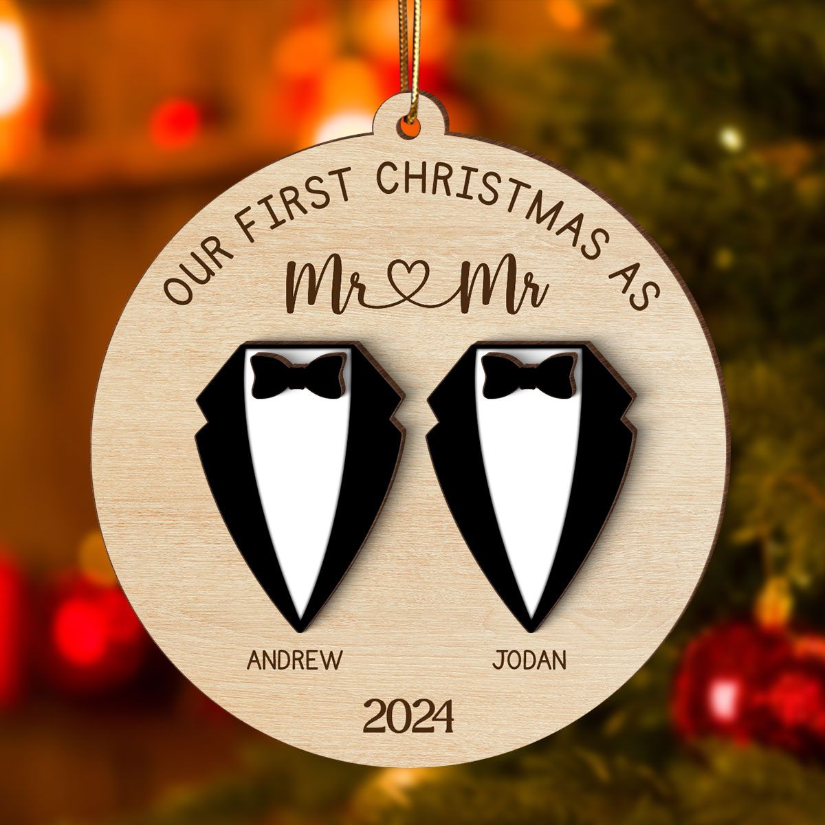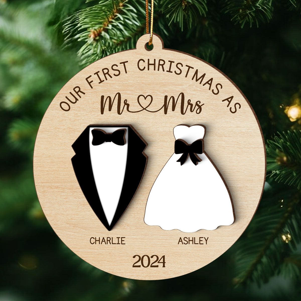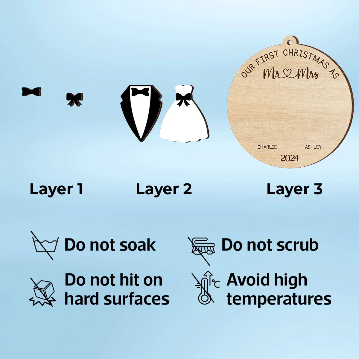 First Christmas Wedding Mr Mrs Personalized 3-Layer Wooden Ornament, Newlywed Gift Christmas Gift
