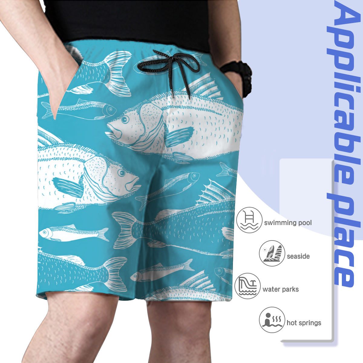 Material: 100% polyester, wearing comfortable and casual. Mesh lining featured. Relaxed-fit, suitable for daily wear or swimming.