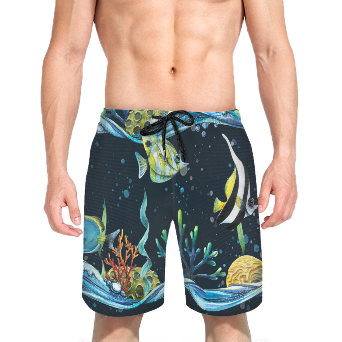 Fish With Seawaves Men's Swim Trunks No.XMVJNA