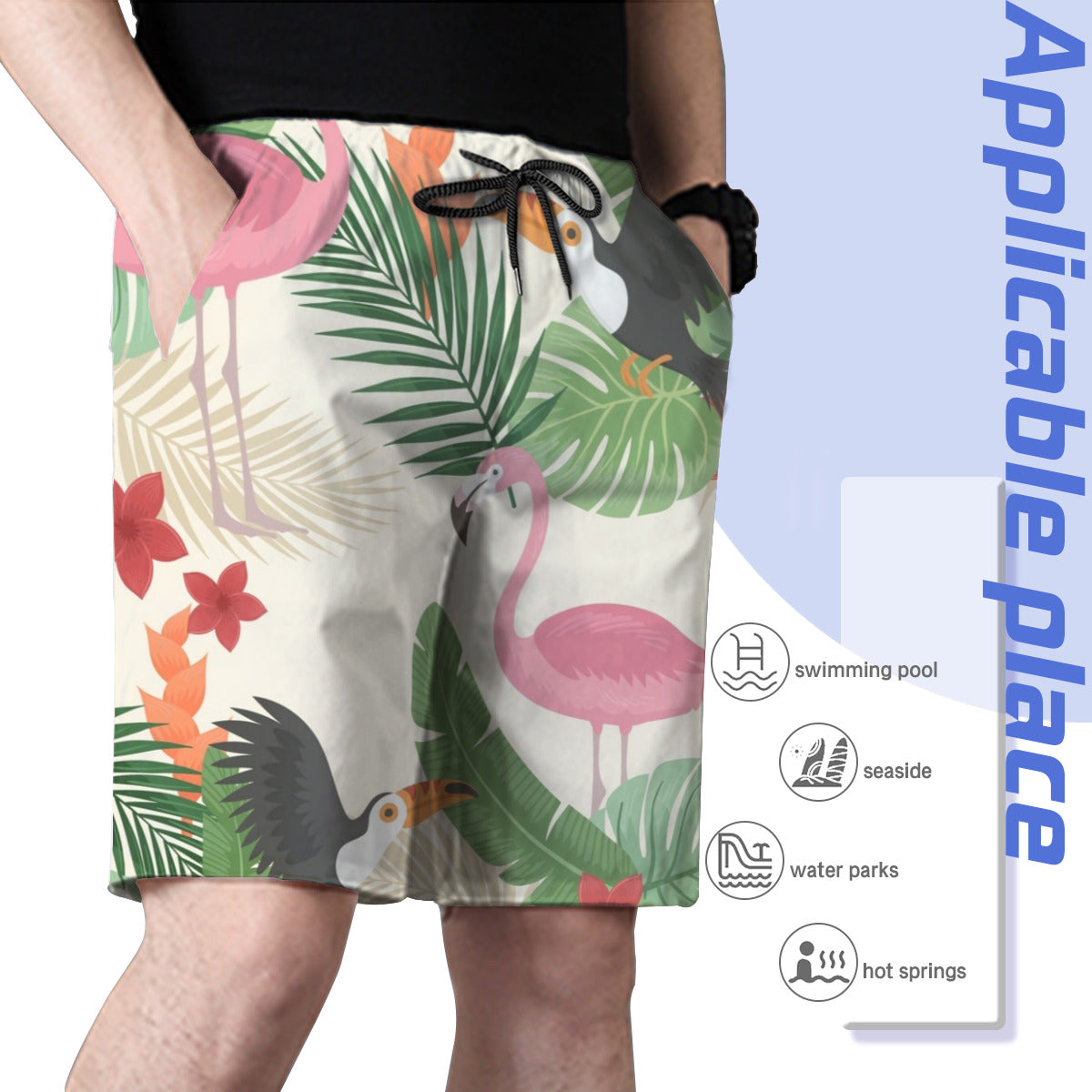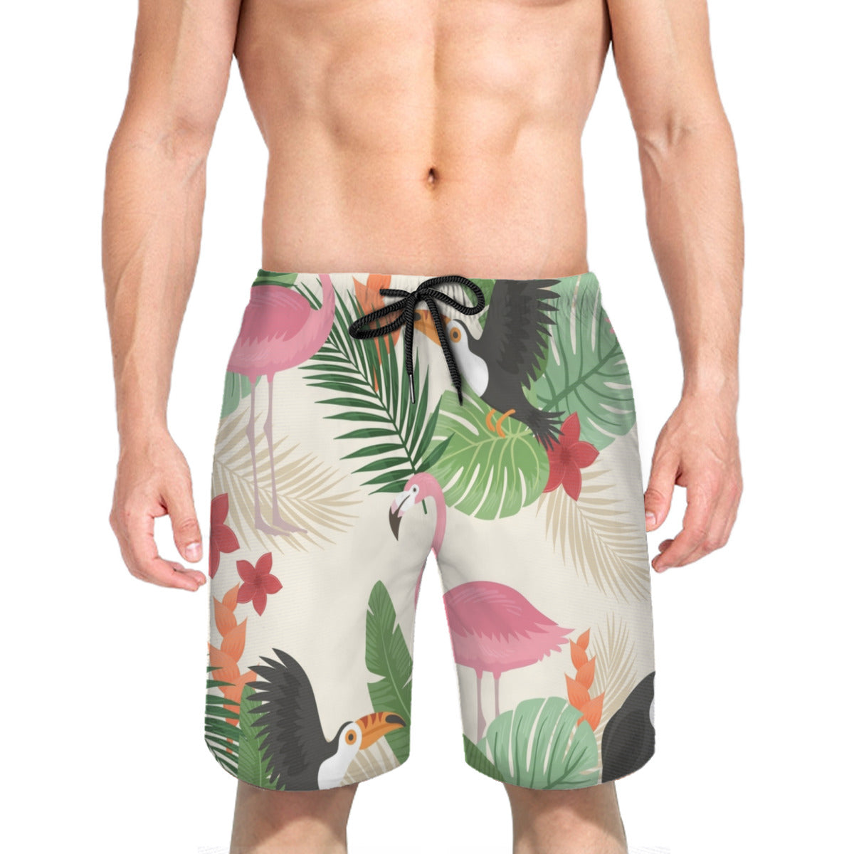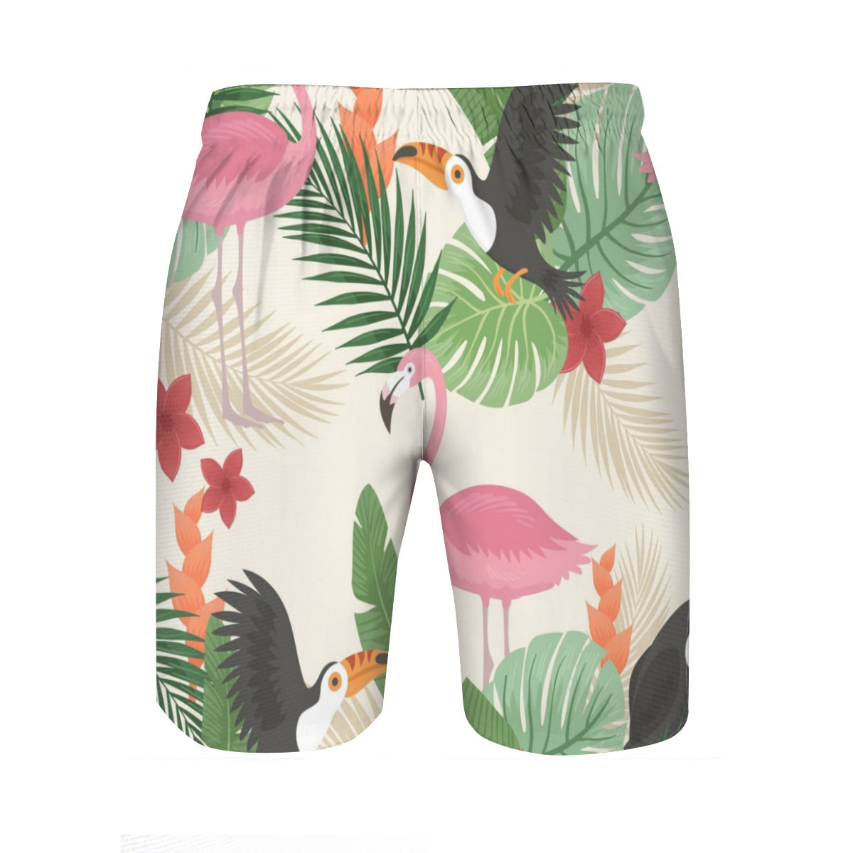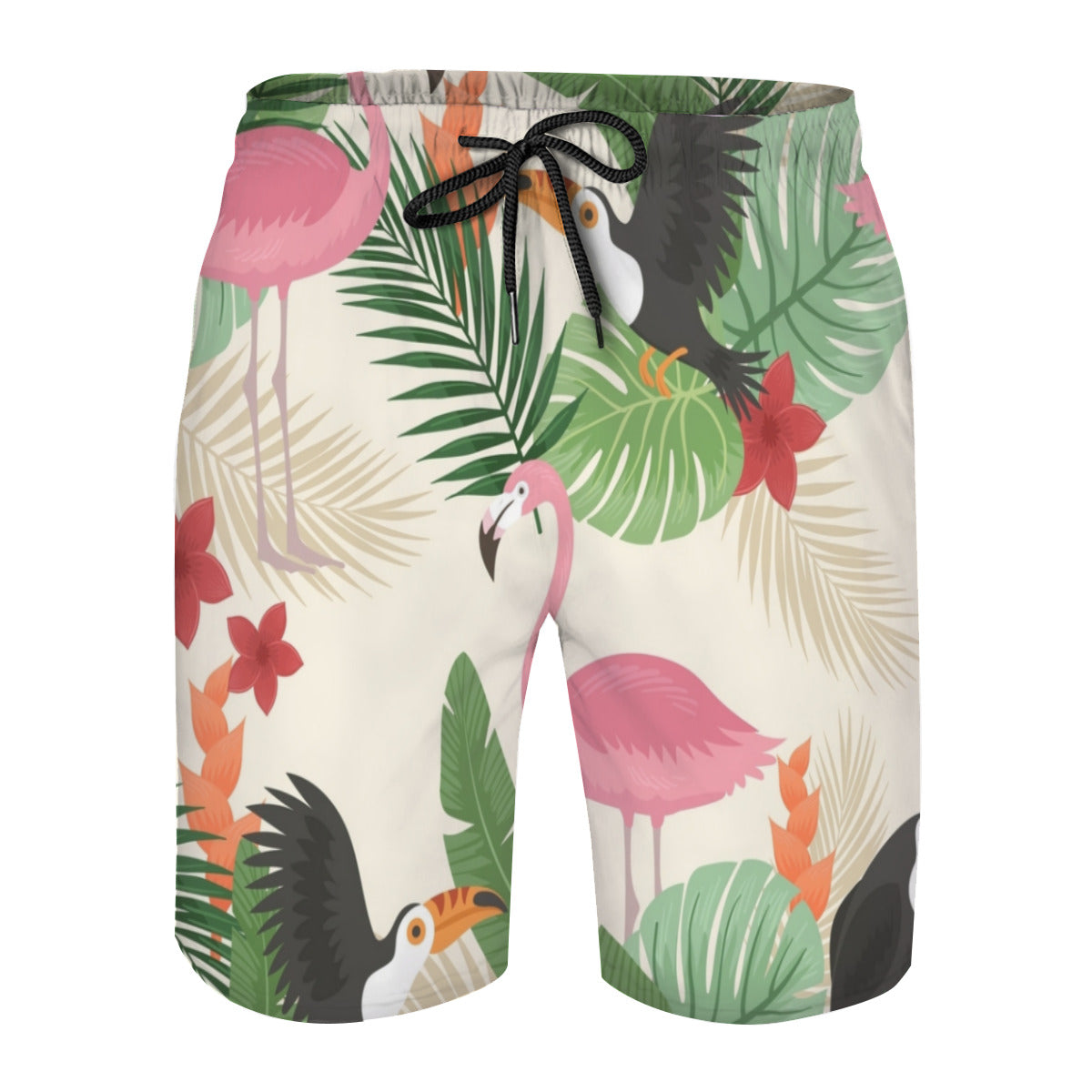 Material: 100% polyester, wearing comfortable and casual. Mesh lining featured. Relaxed-fit, suitable for daily wear or swimming.