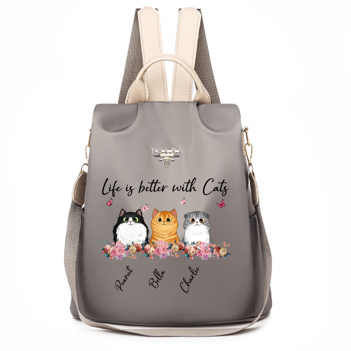 Flowers Stripe Fluffy Cats Personalized Backpack