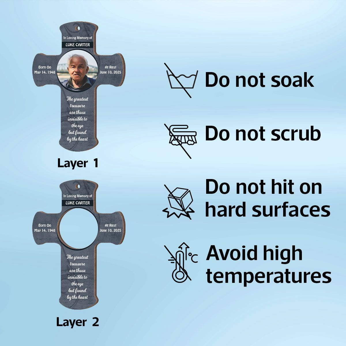Forever in Our Hearts Memorial Keepsake, Sympathy Gift Photo Cross Christmas Personalized 2-Layer Wooden Ornament