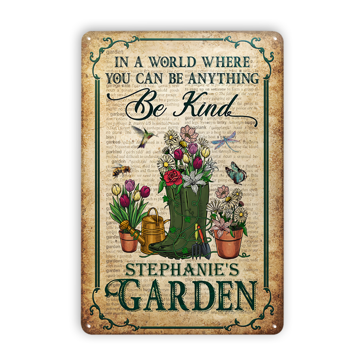 Garden In A World Where You Can Be Anything Be Kind Custom Classic Metal Signs, Gardening Metal Sign, Idea Decoration For Gardening, Personalized Garden Sign