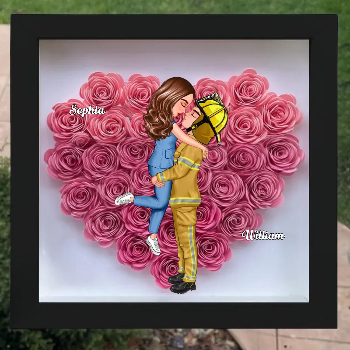 Gift For Couples by Occupation Gift For Her Gift For Him Firefighter, Nurse, Police Officer Personalized Heart Rose Shadow Box