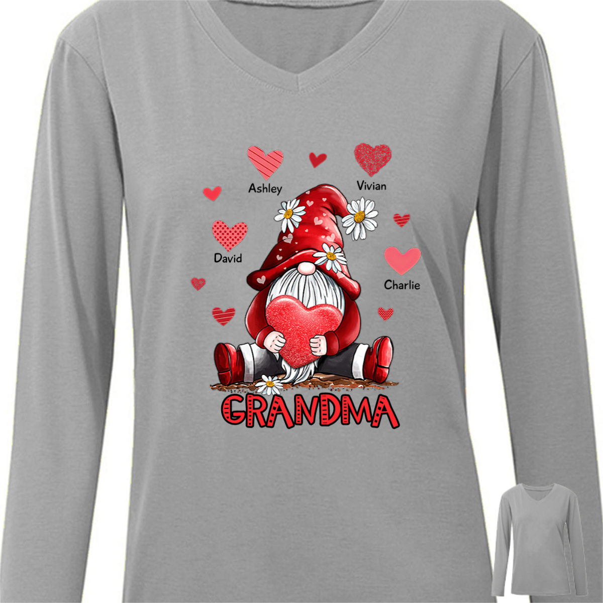 Gnome Heart Mom Grandma Gift Personalized Long Sleeve Shirt