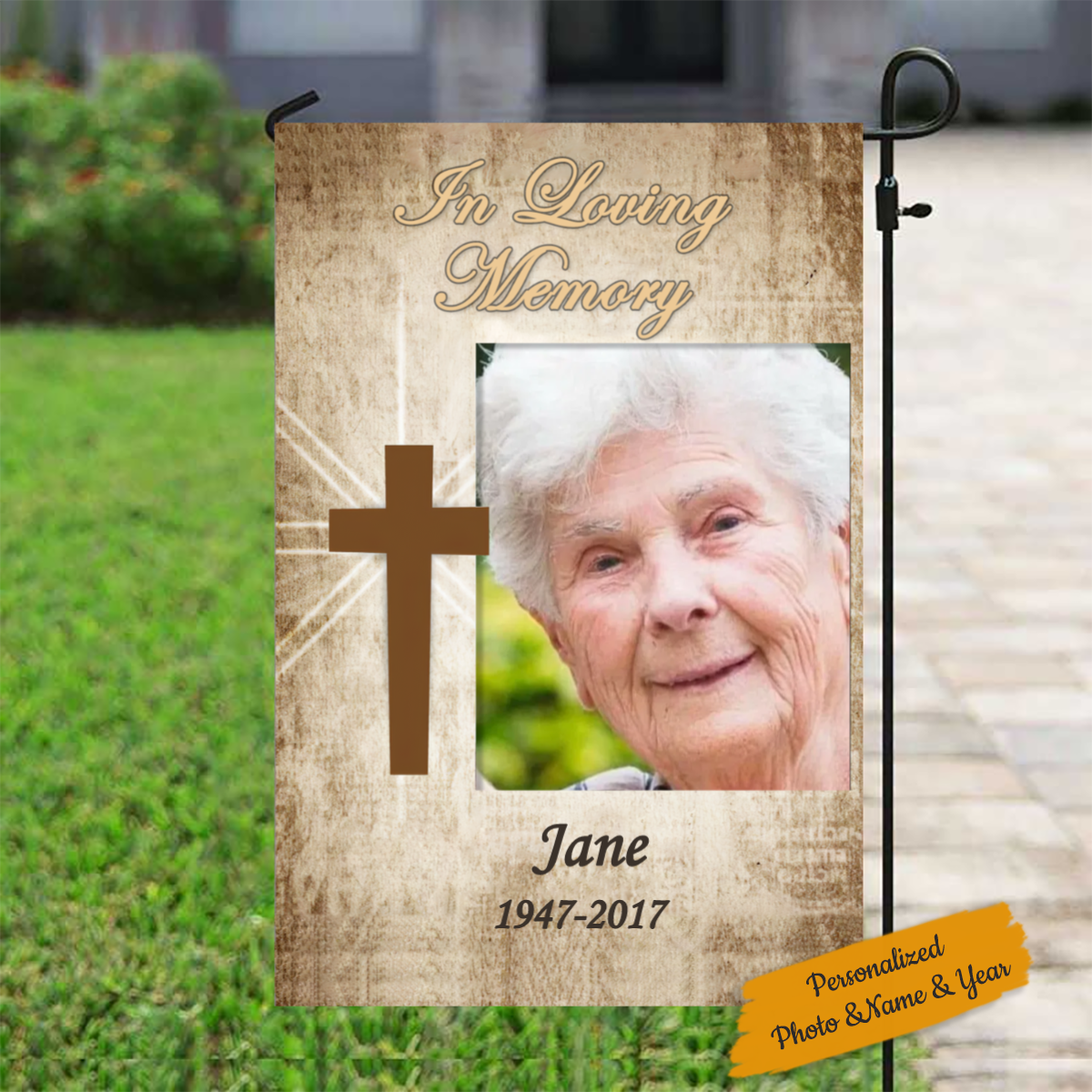 God Bless Memory garden flags, family loss flags, In Loving Memory Flag, graveyard decorations, In memory dad, cemetery photo flag