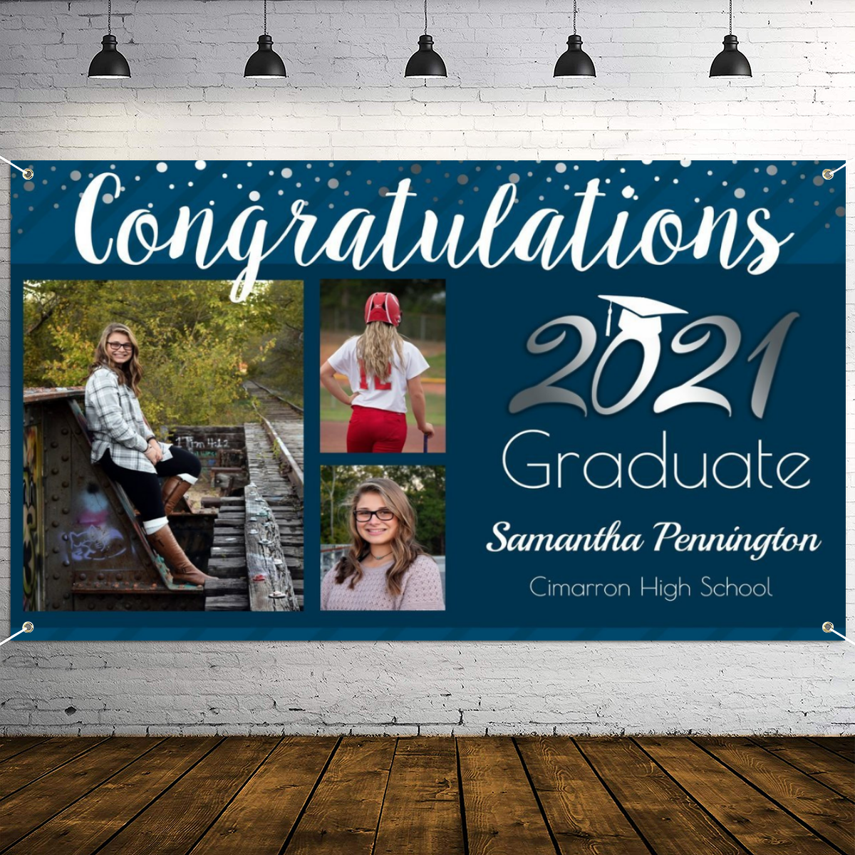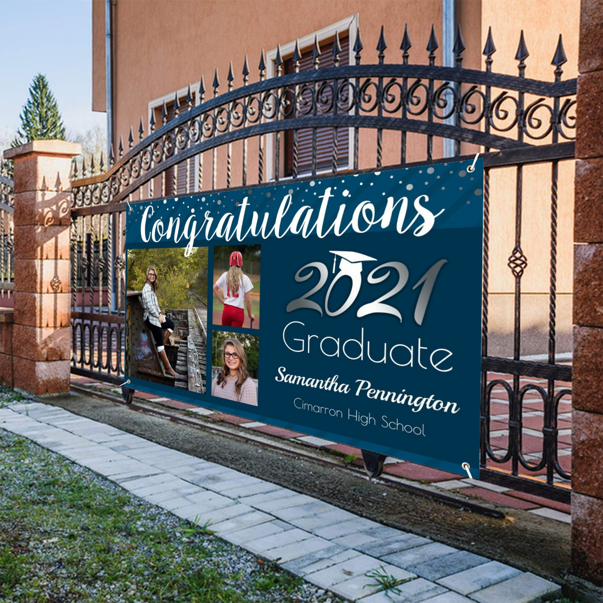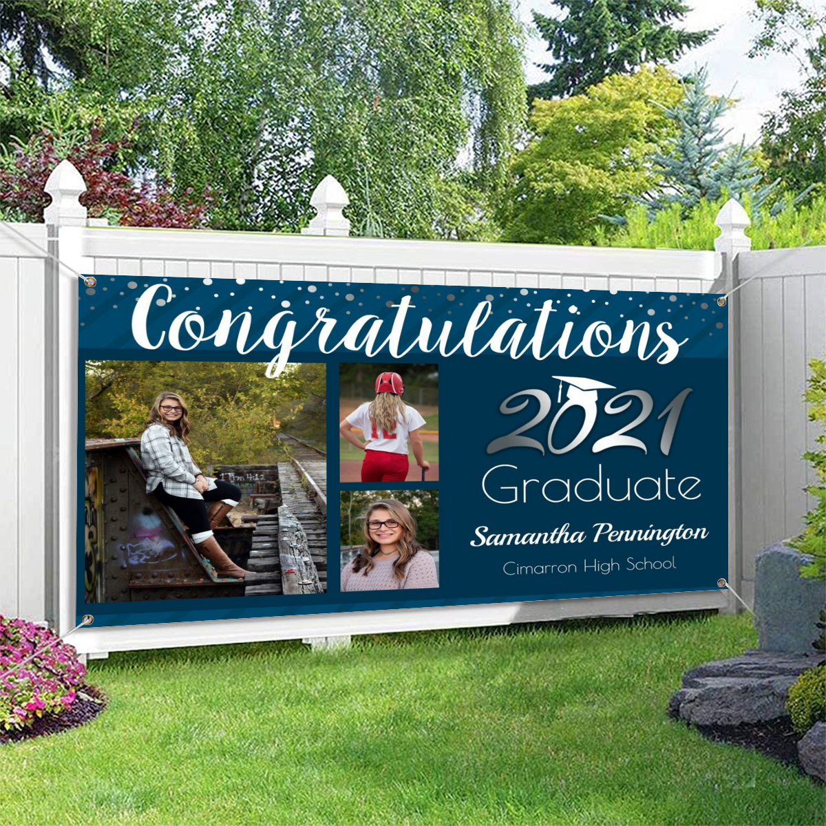 - Graduation Banner 2021 graduation decorations. Extra large sized backdrop. Congrats Grad sign creates a fun event atmosphere for friends and family.