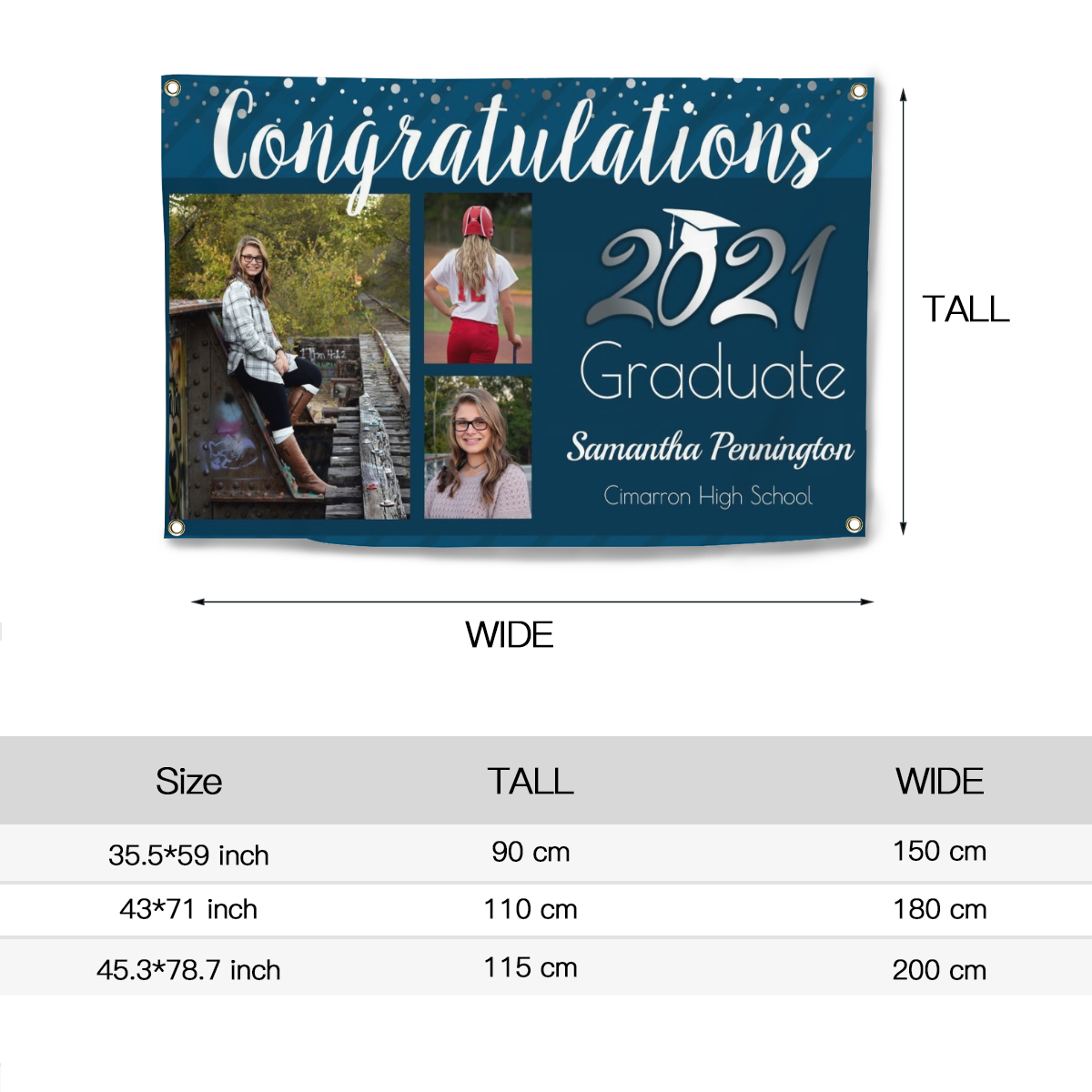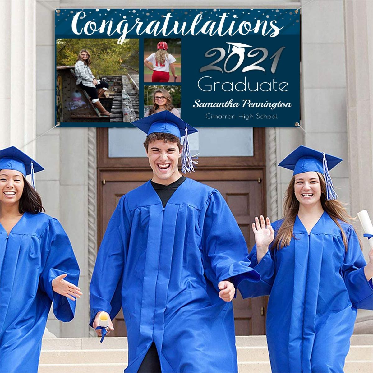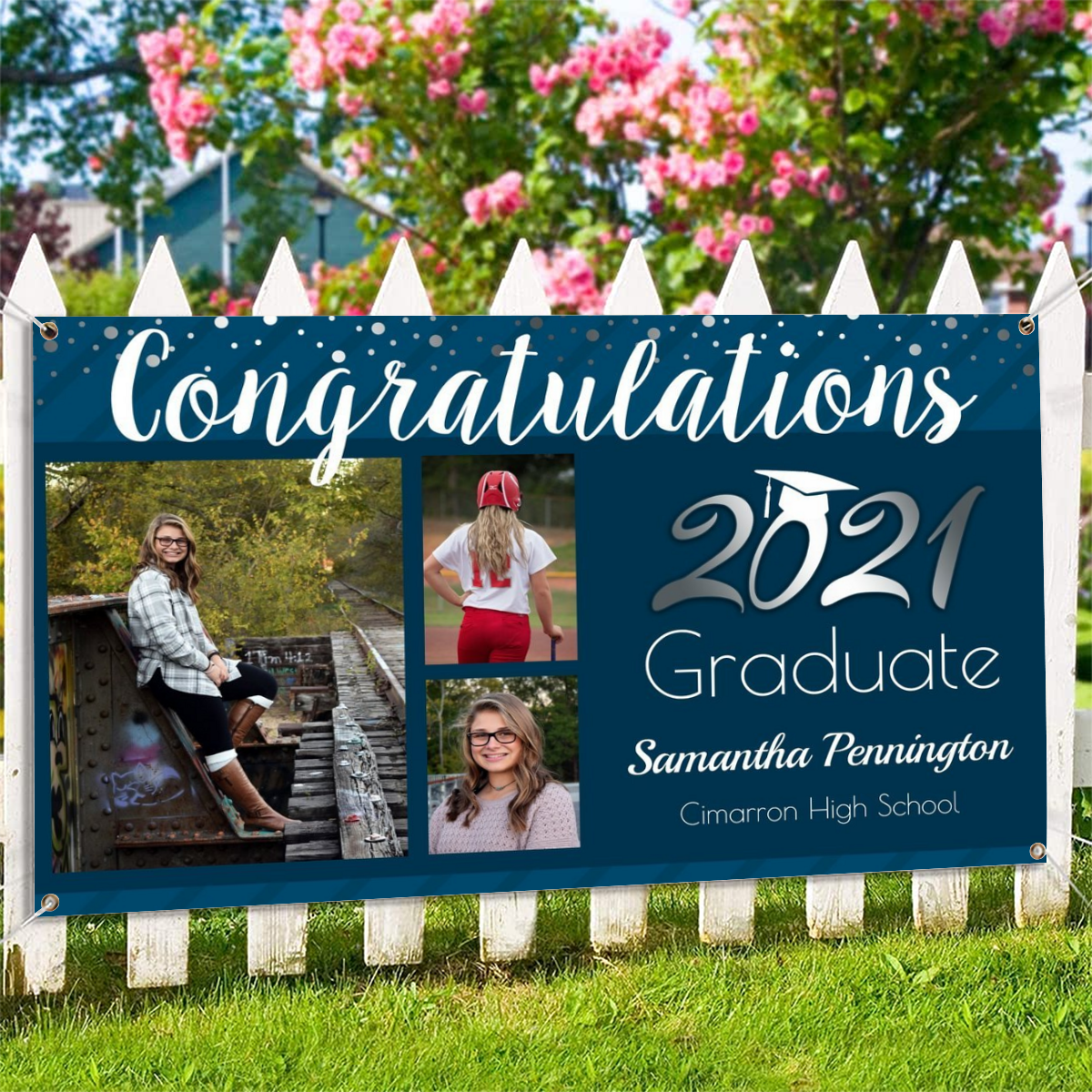 - Graduation Banner 2021 graduation decorations. Extra large sized backdrop. Congrats Grad sign creates a fun event atmosphere for friends and family.