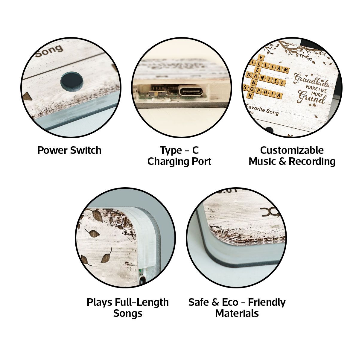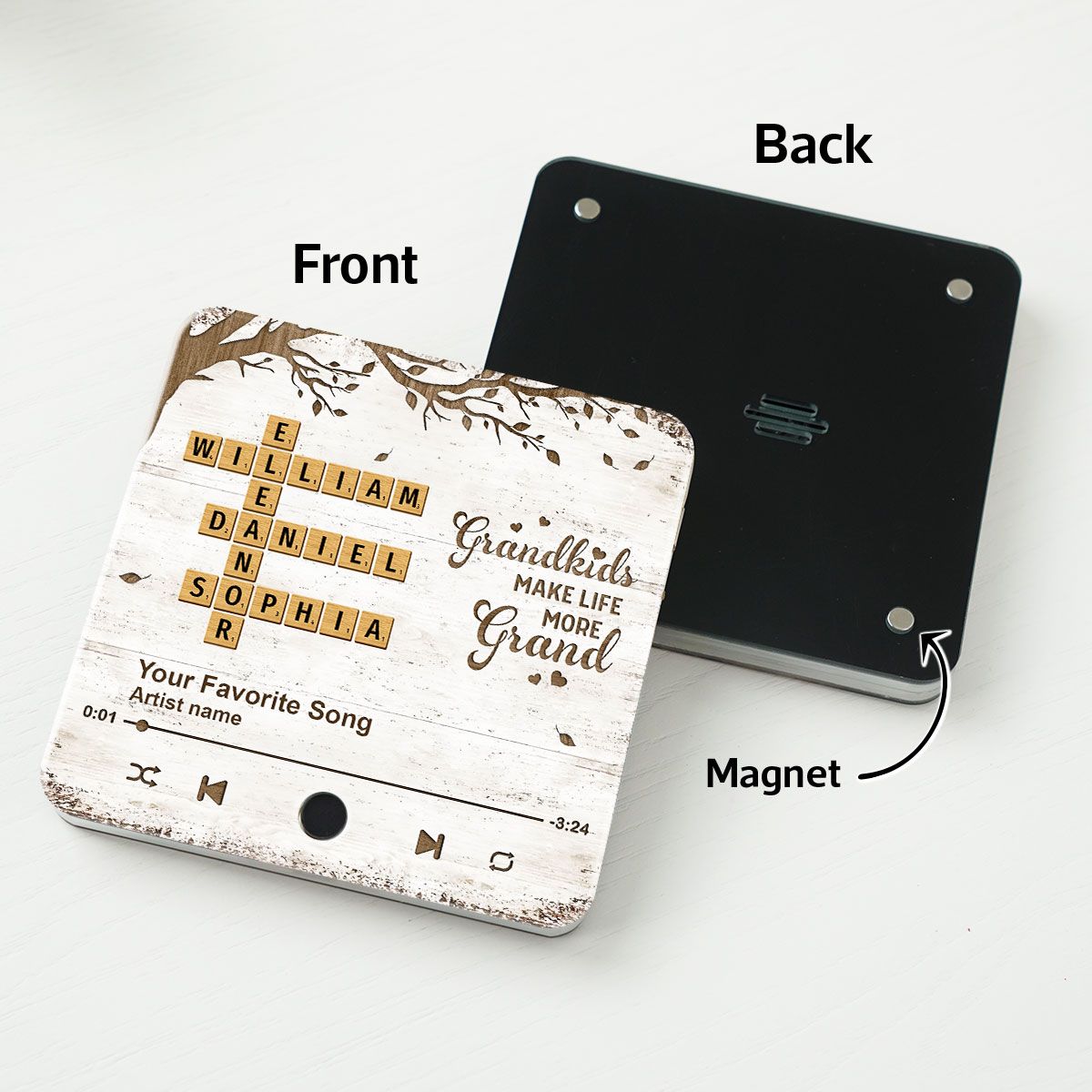Grandkids Make Life More Grand, Crossword Puzzle Art Personalized Music Fridge Magnet, Mother's Day Gift for Grandma